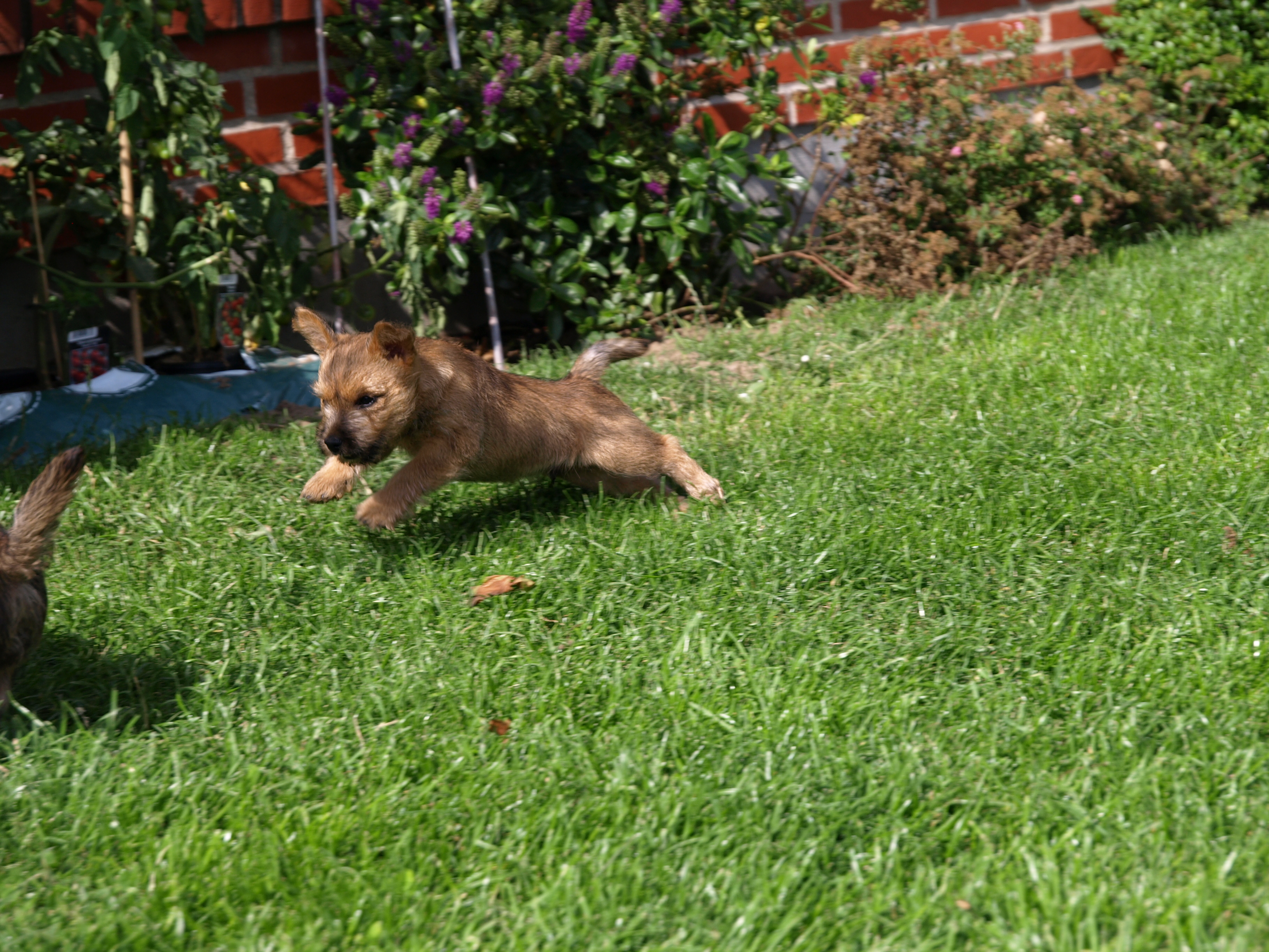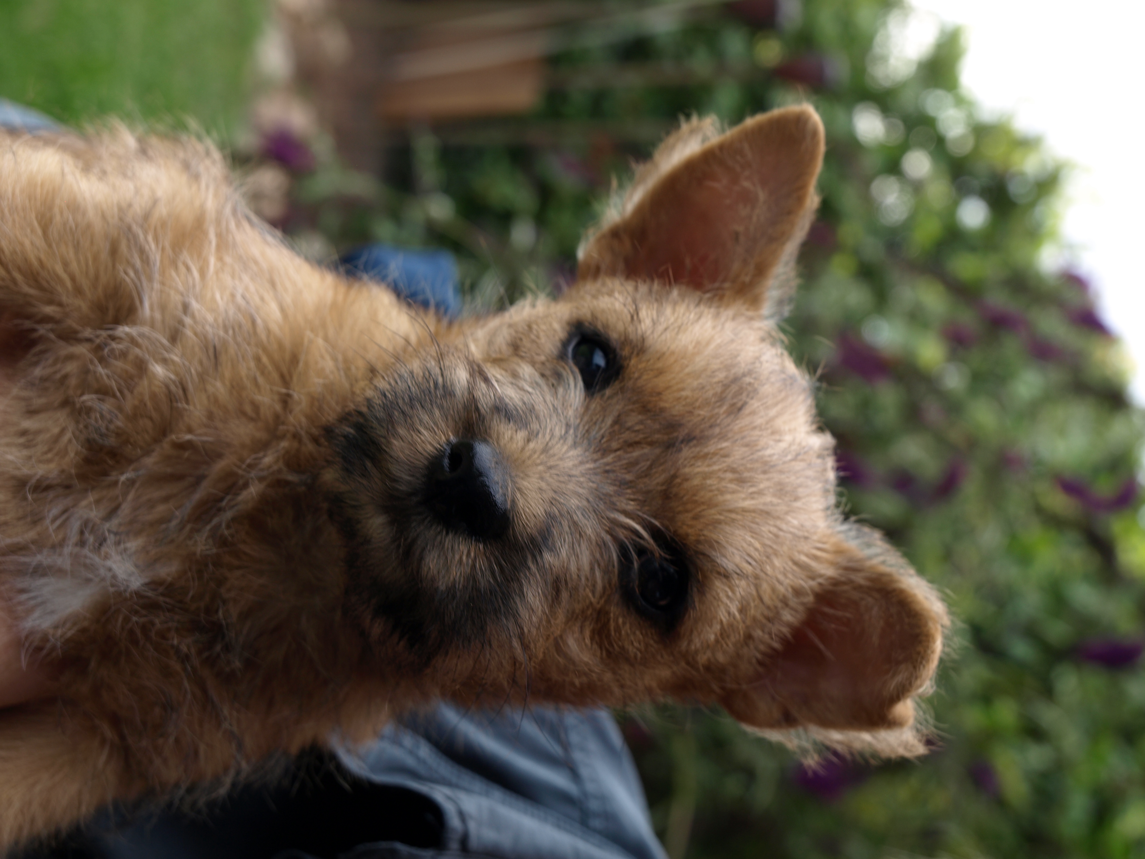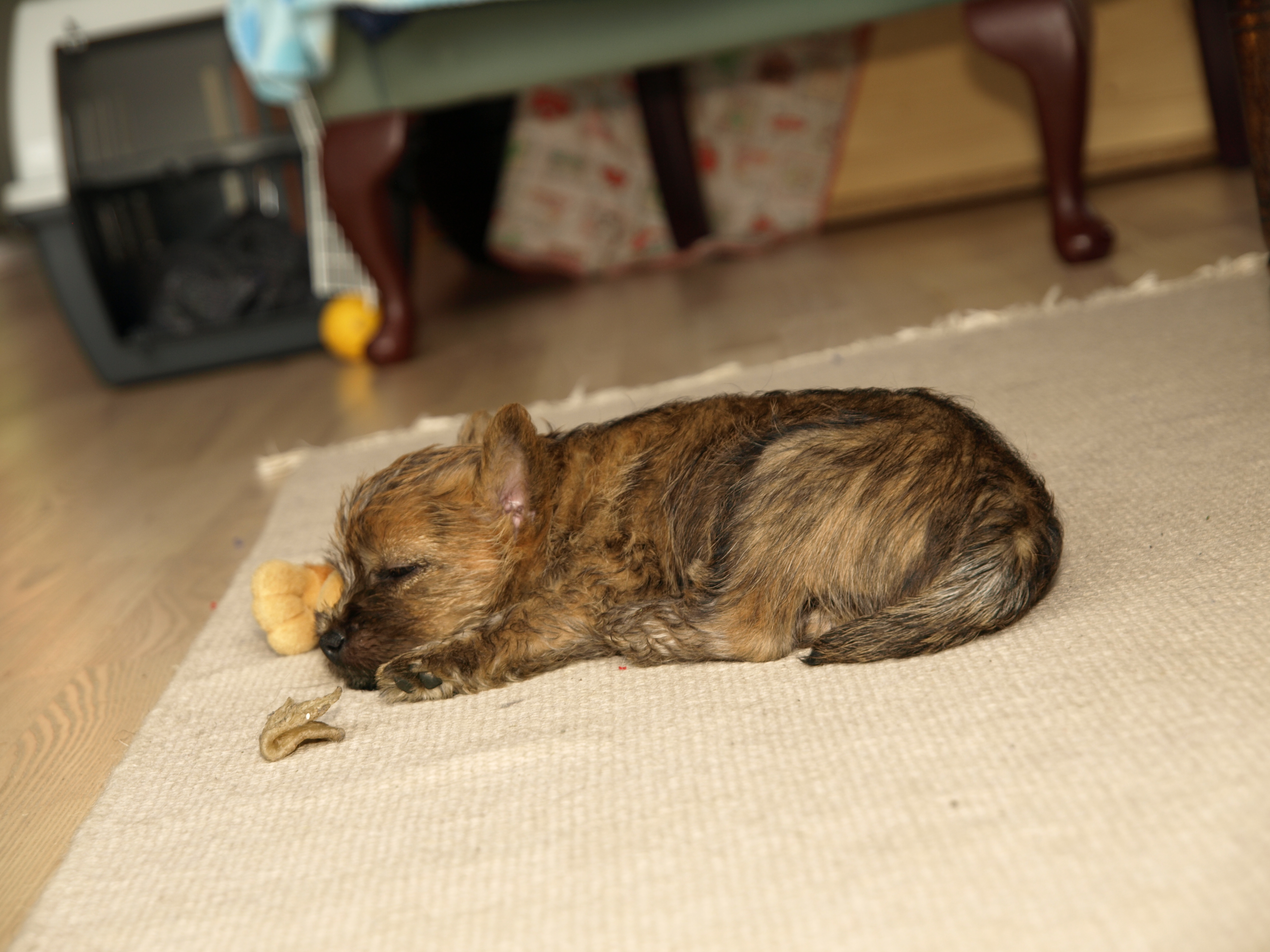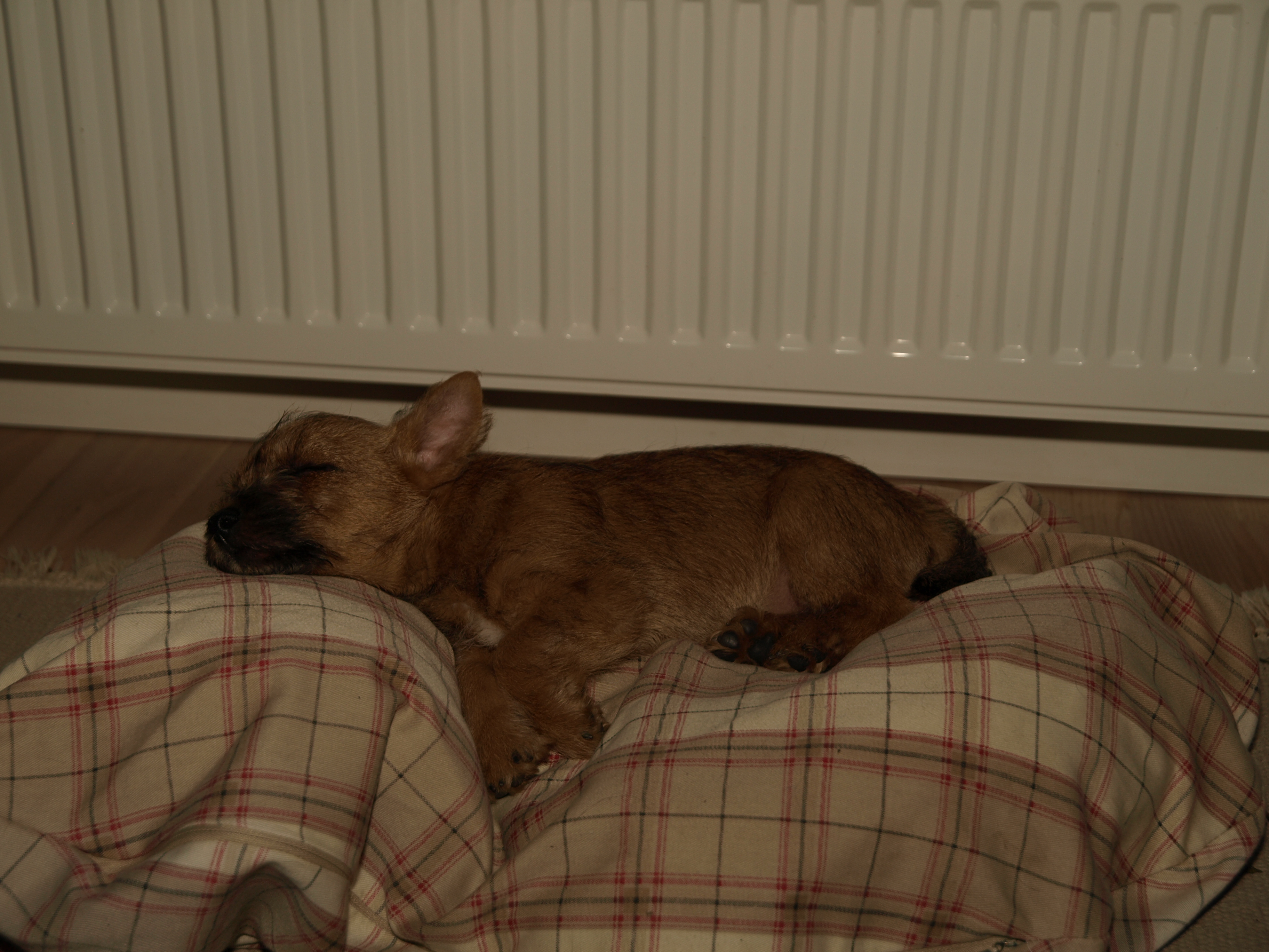 Herhjemme skal man lige holde lidt øje med Rocky hvis døren ud til haven er lukket i. Han er ikke helt sikker endnu, og man skal lige være opmærksom på om han lige er vågen, lige har tumlet eller går og lusker lidt rundt. Men sådan er det jo med hvalpe.