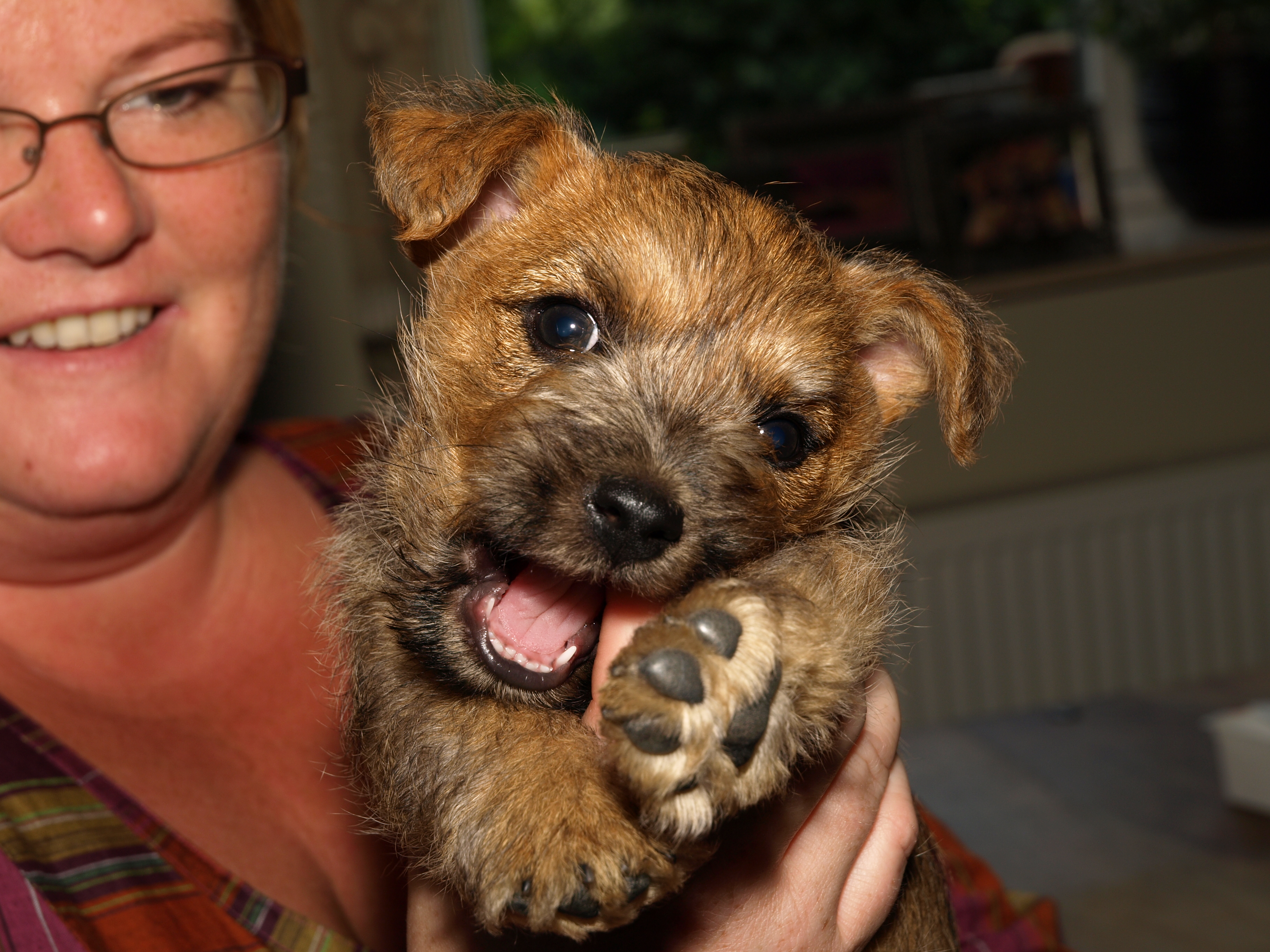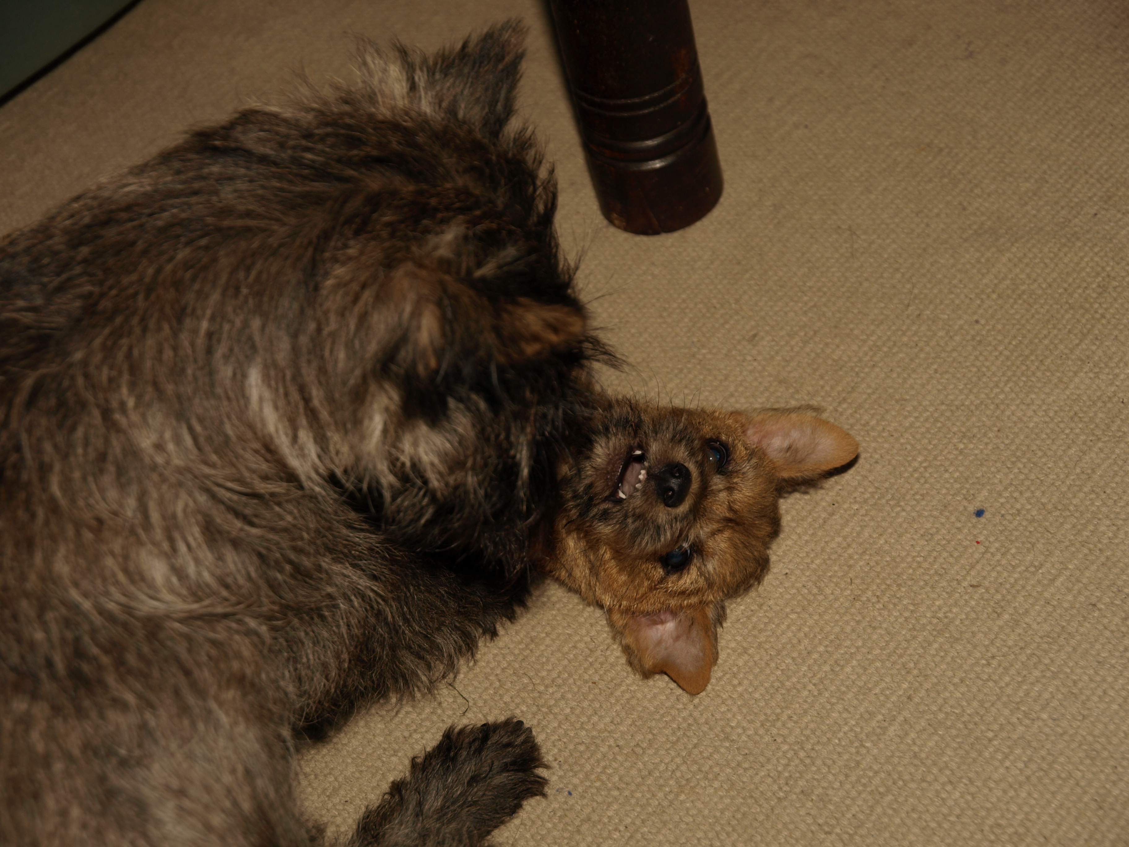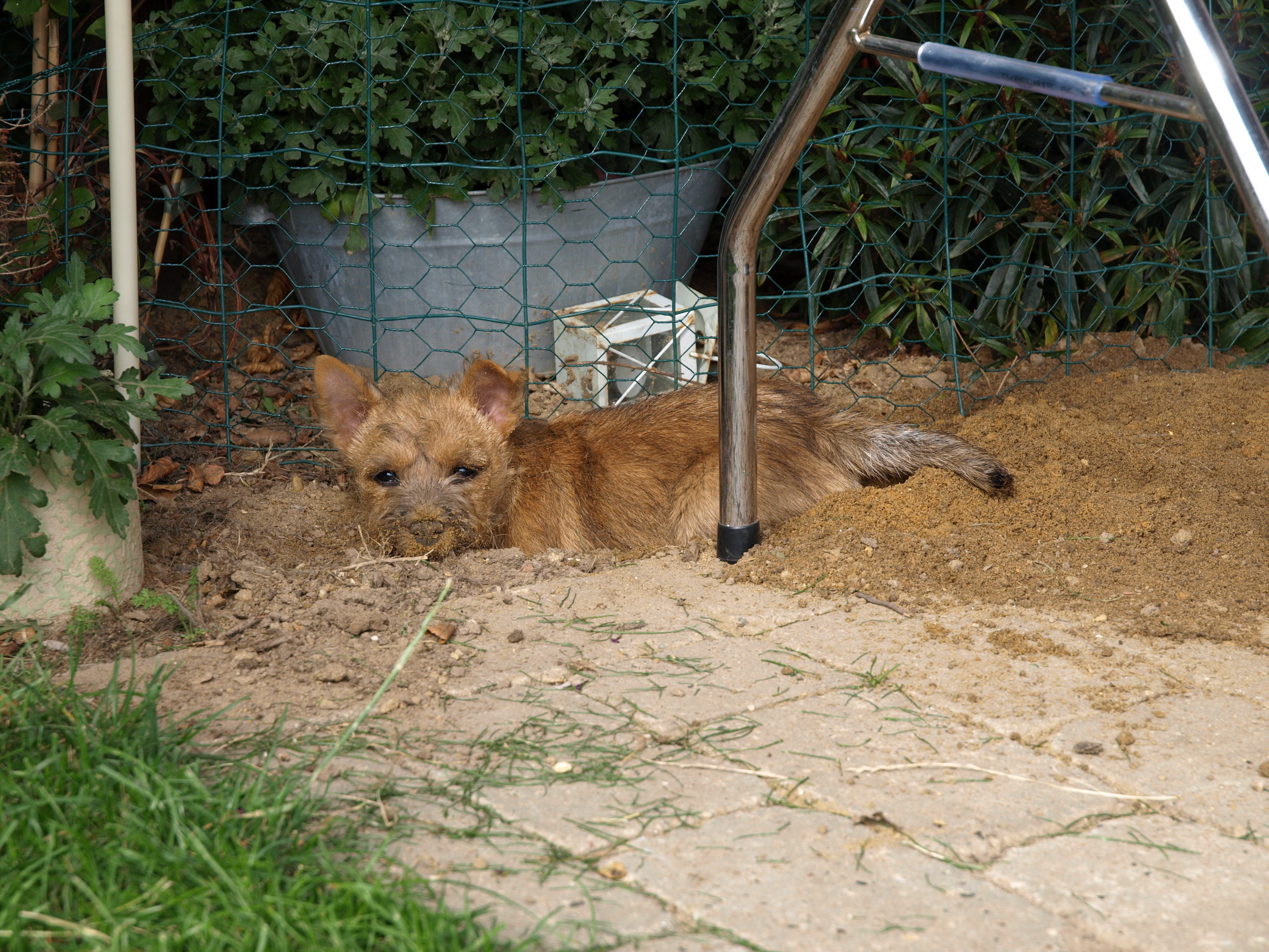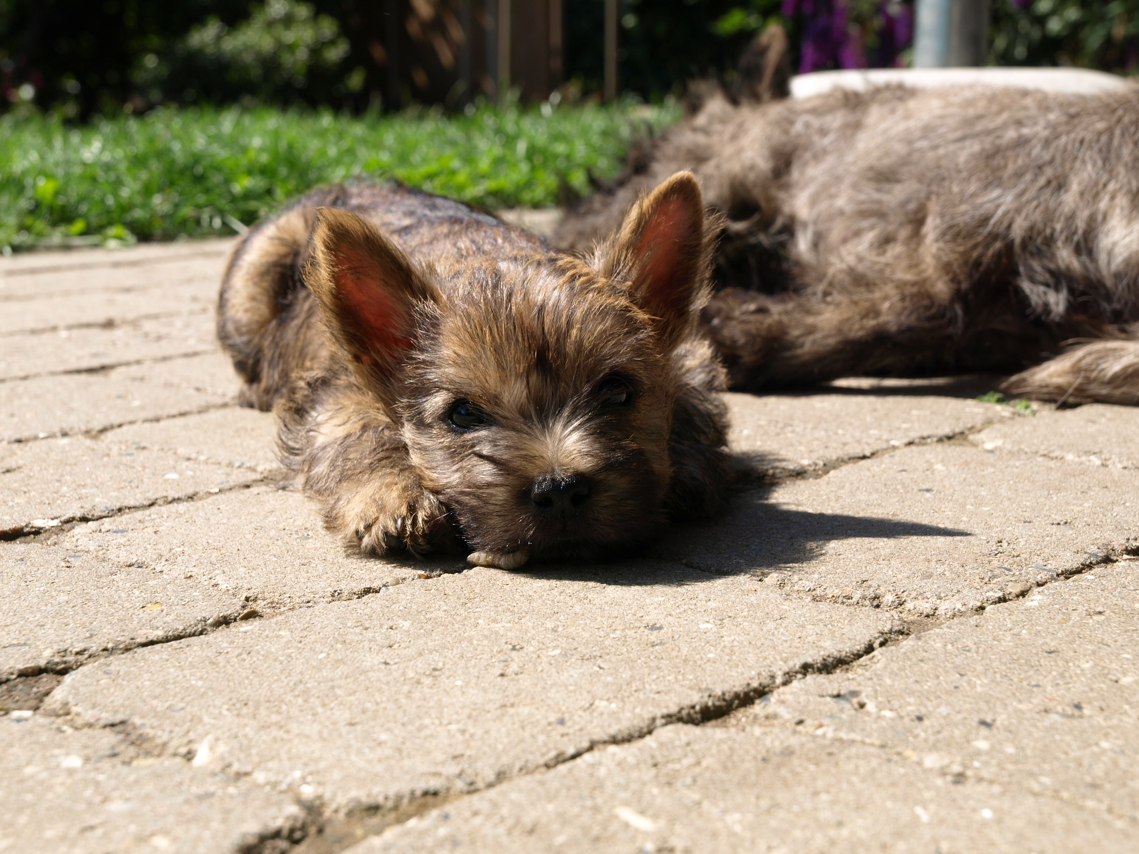 Herhjemme skal man lige holde lidt øje med Rocky hvis døren ud til haven er lukket i. Han er ikke helt sikker endnu, og man skal lige være opmærksom på om han lige er vågen, lige har tumlet eller går og lusker lidt rundt. Men sådan er det jo med hvalpe.