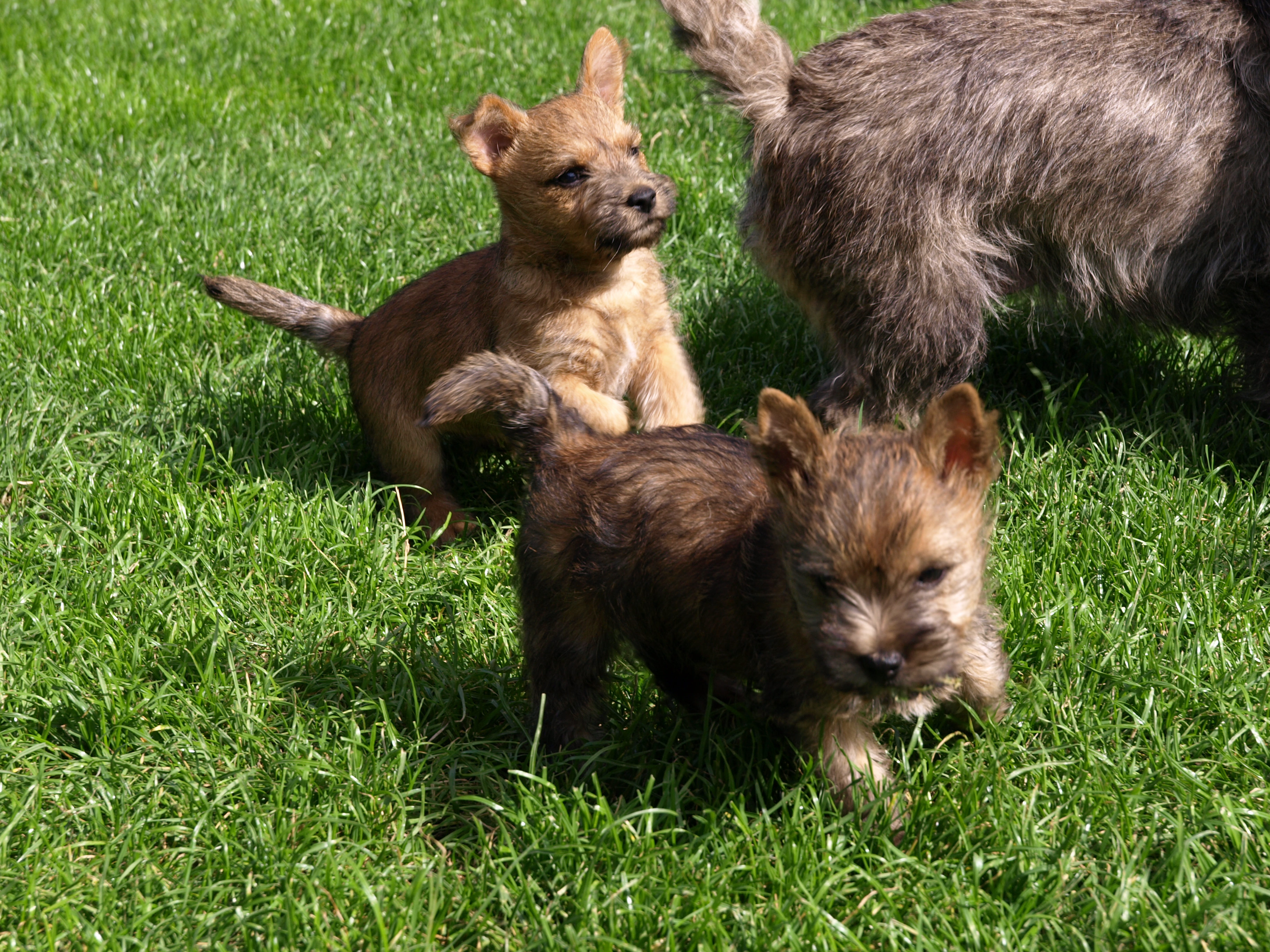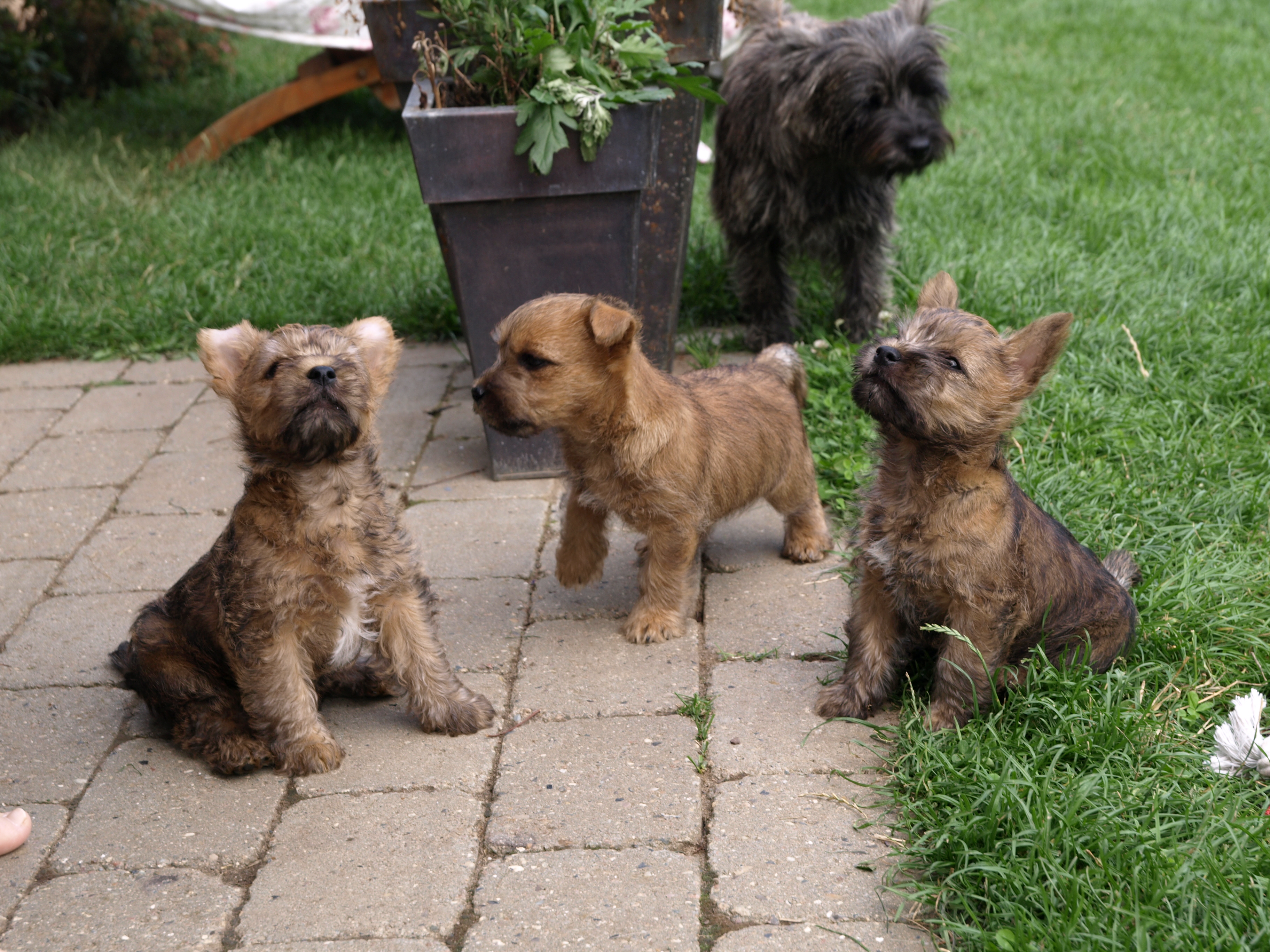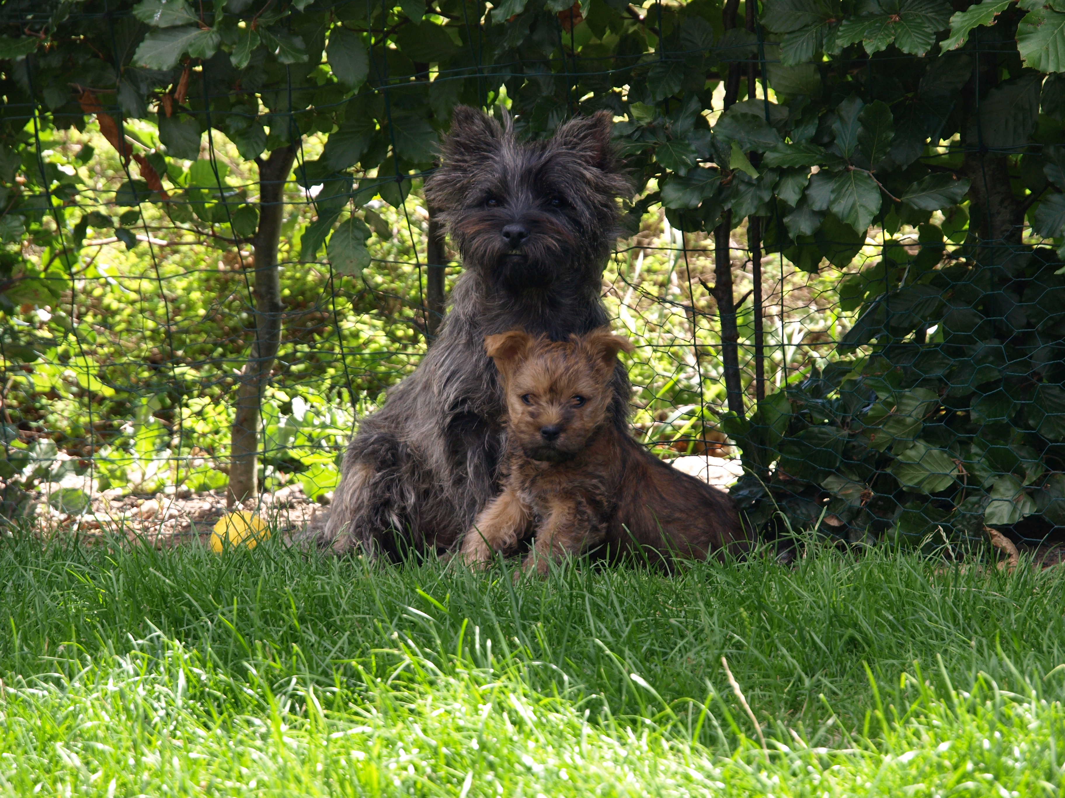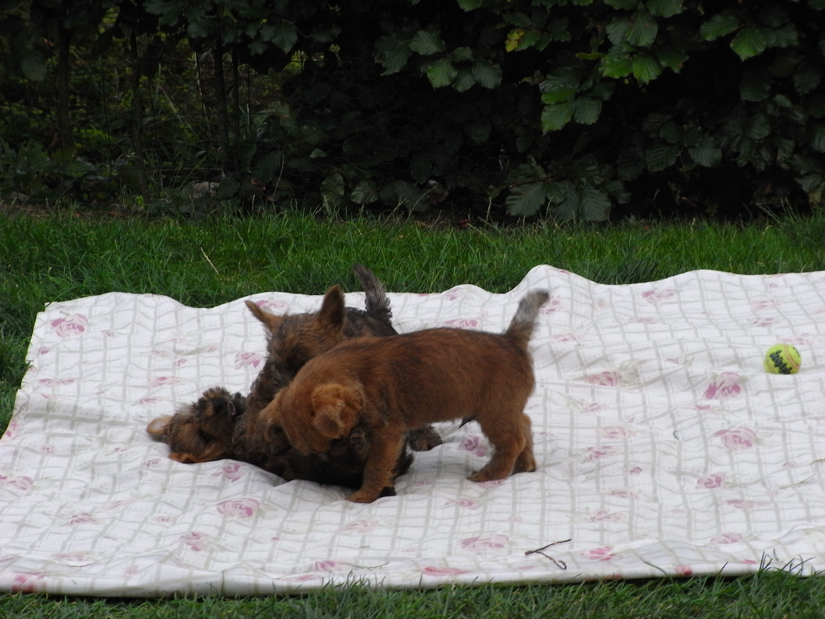 Noget af det, som vi var usikre på, var jo hvordan det ville gå med Dittie og Ronia mens vi havde hvalpene, men det er gået rigtigt fint. Ronia er bestemt ikke så fysisk medtaget som hun var sidst, hvor hun jo altså var rigtig tynd. Dittie har hjulpet til med opdragelsen og hun har været den fineste lege-tante.