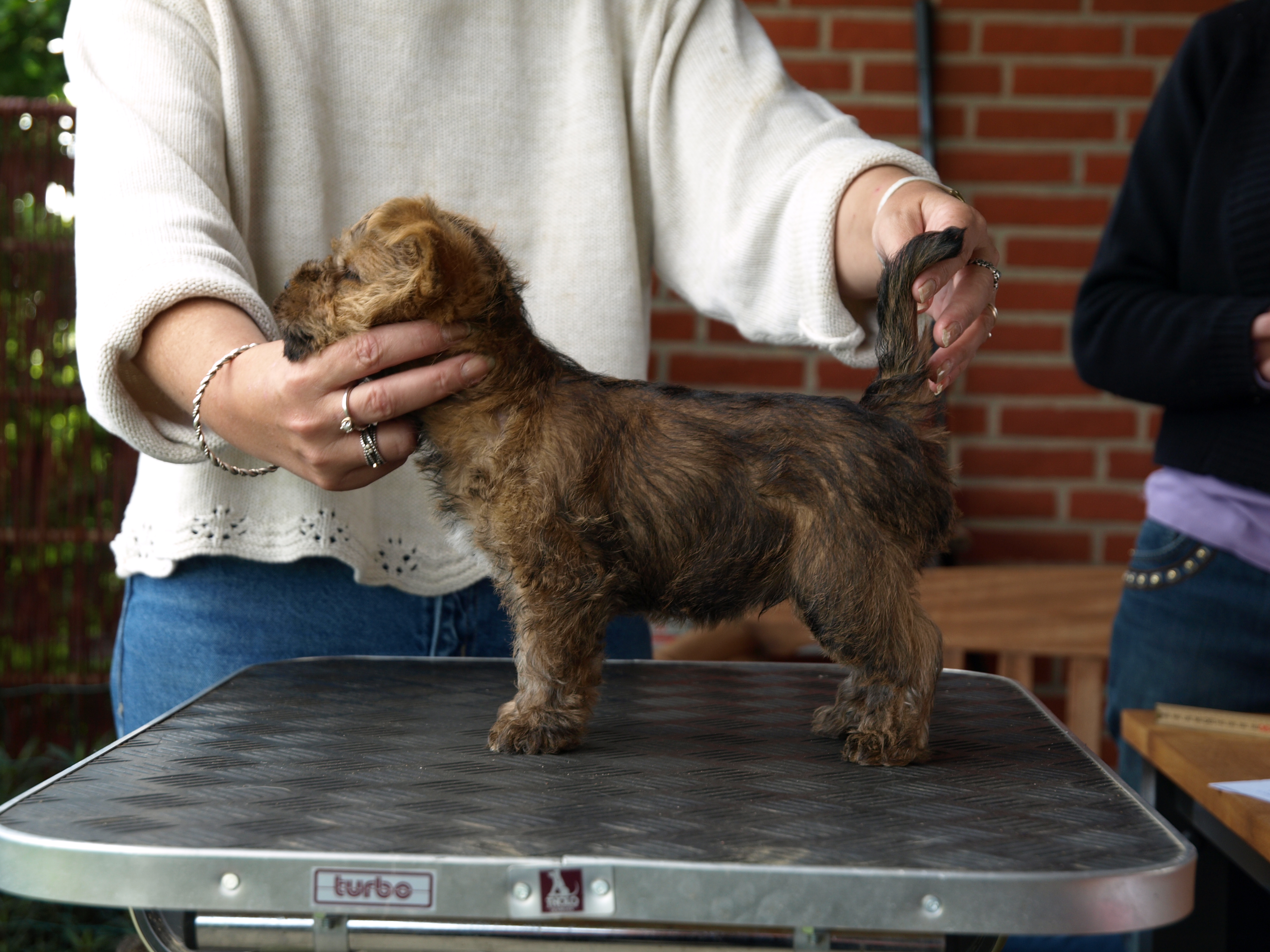 Dittie synes vi jo selv at der er blevet til en rigtig dejlig, frisk, aktiv hund – og det var skønt at se at hendes tre brødre også var vokset til og blevet nogen skønne, selvbevidste knejter med krudt bagi. Det var sjovt at se Dittie sammen med de tre brødre – det gav et godt indtryk af at sådan en tæve altså er lidt mere piget i bygning og udtryk i forhold til de tre mere drengede brødre.