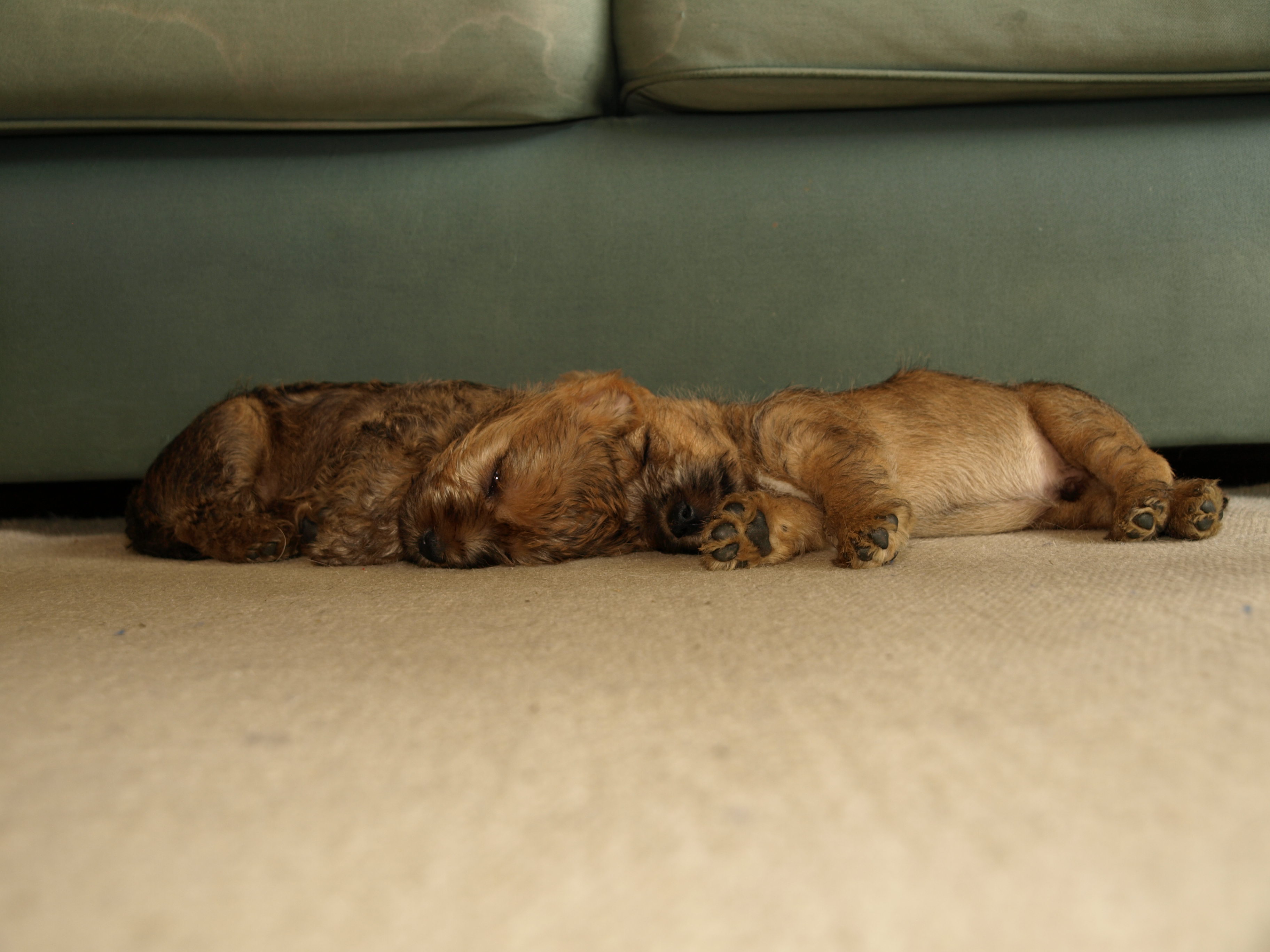 I weekenden var vi på familiebesøg med overnatning, og her var Rocky og tøserne selvfølgeligt også med. Selvom at der ikke var en indhegnet have som herhjemme, så kom vi igennem hele weekenden uden nogen lækage indenfor overhovedet. Det synes vi ærligt talt at der er imponerende af en hvalp på kun næsten 10 uger – i et hjem der er fremmed for ham.