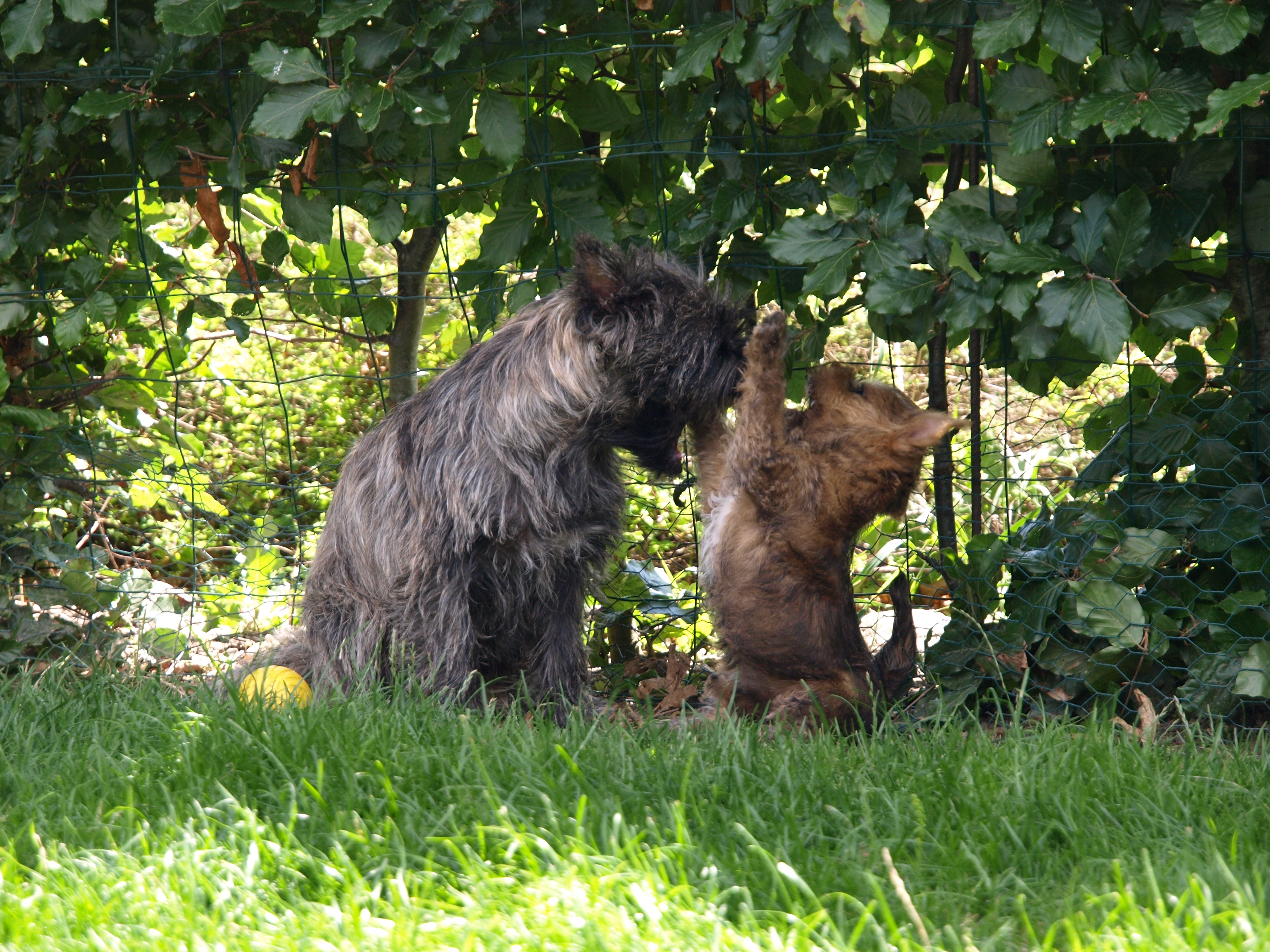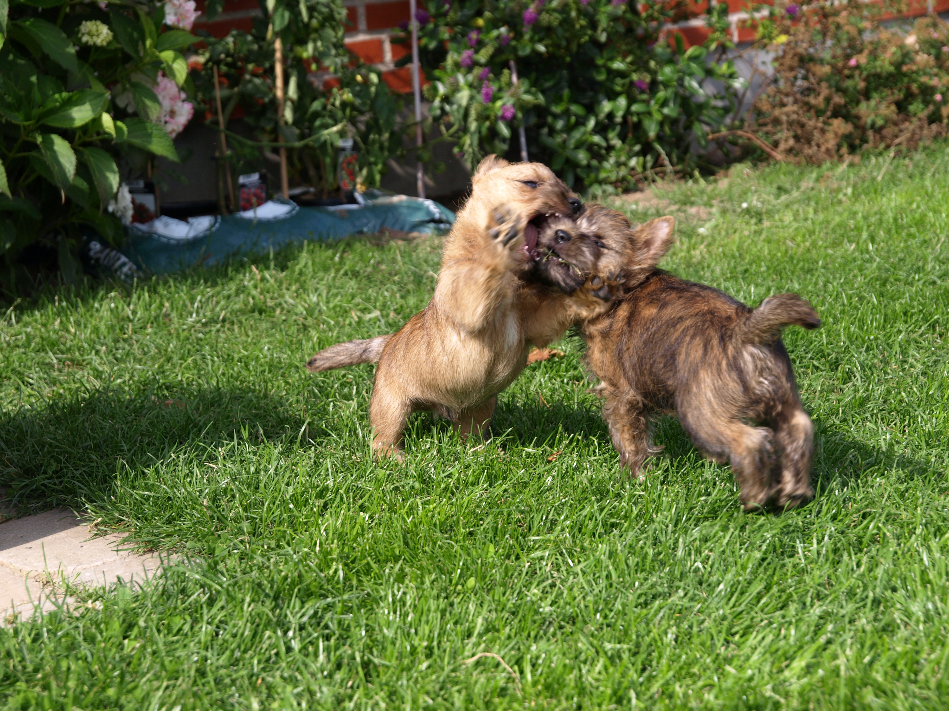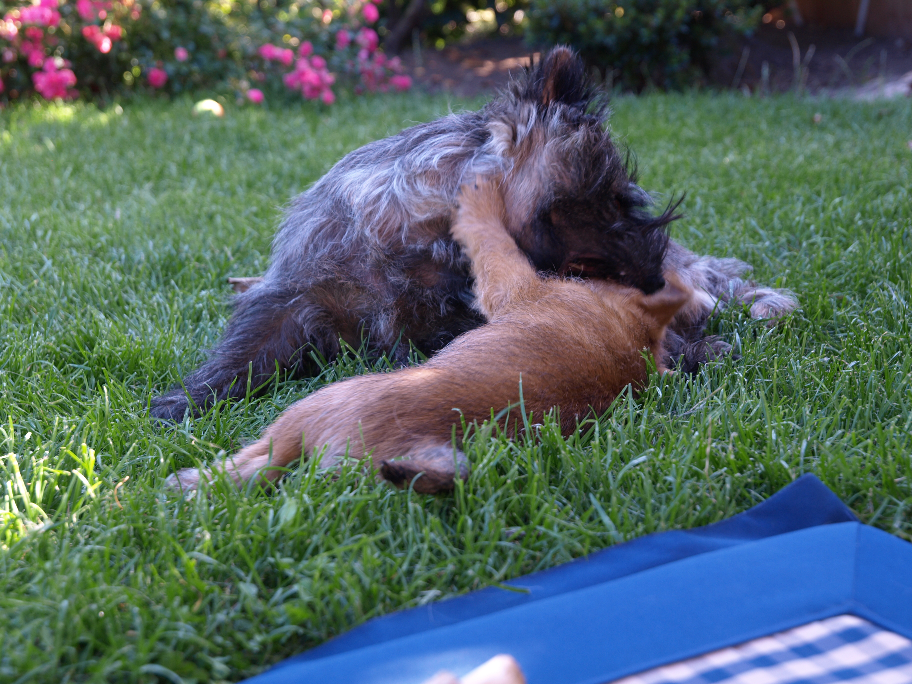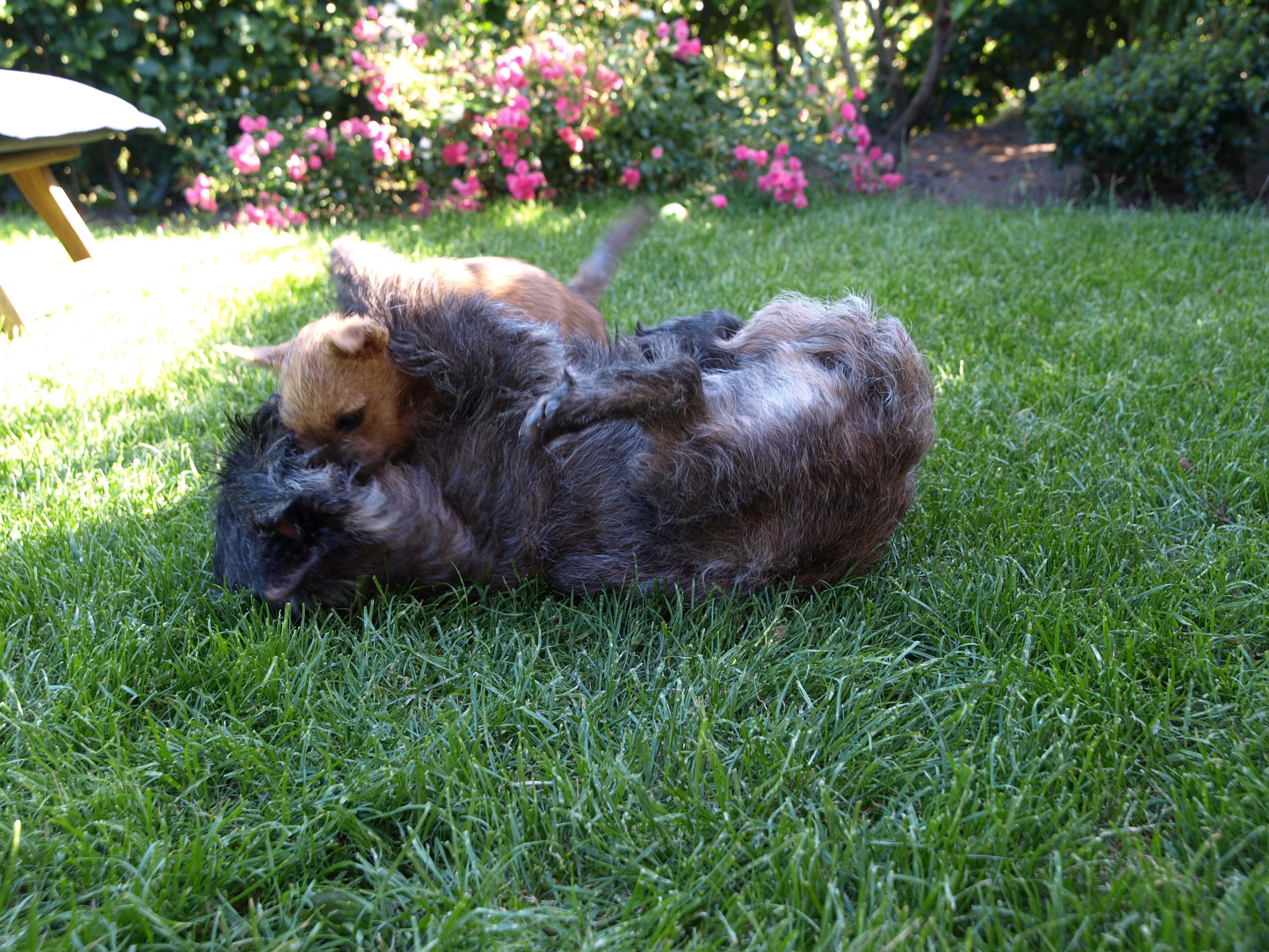 Bare lige en stribe billeder fra haven her til eftermiddag. Haven lægger græs til mange løbeture og er skueplads for drabelige opgør, hvor Messi og Rocky tumler, slås og leger. De er simpelthen så bedårende dejlige begge to.