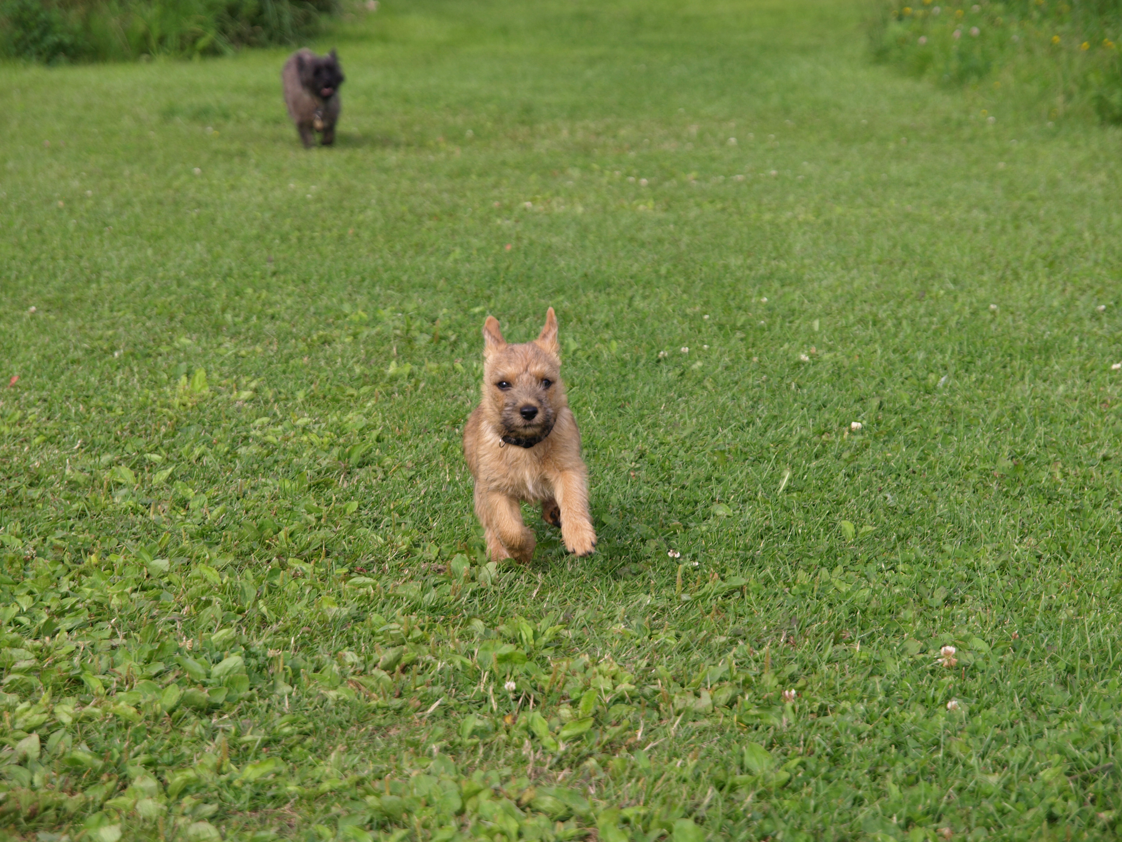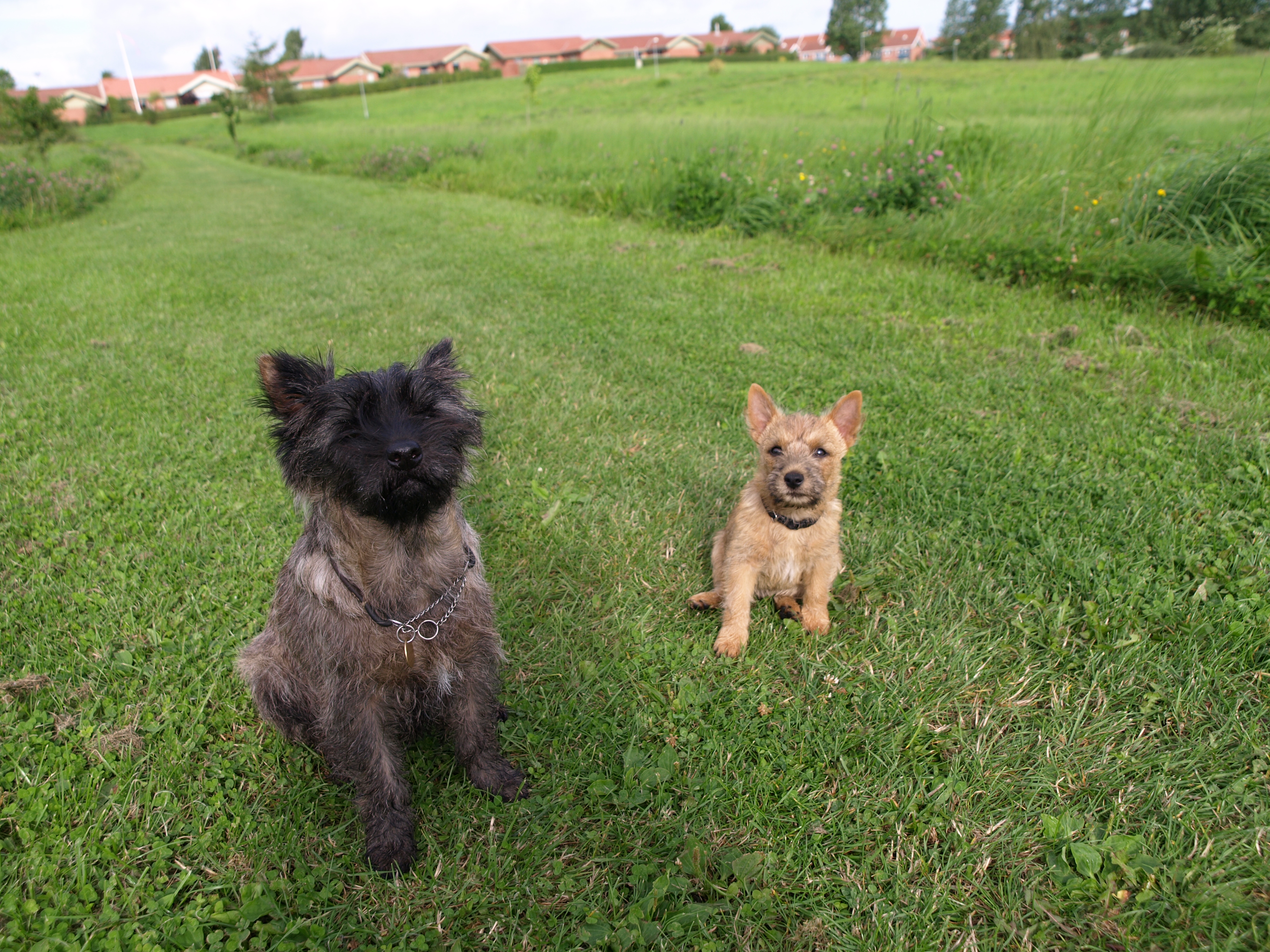 I går eftermiddags var de nede på det lokale, indhegnede hunde-område. Torsdag er “lille-hunde-dag” men der dukkede desværre kun 3 andre hunde op, og ingen af dem var specielt interesserede i de små krudtugler.