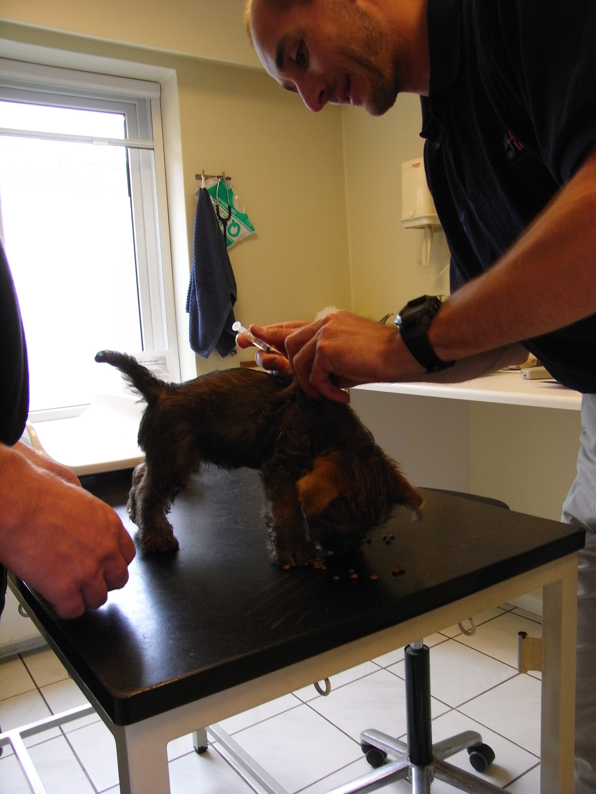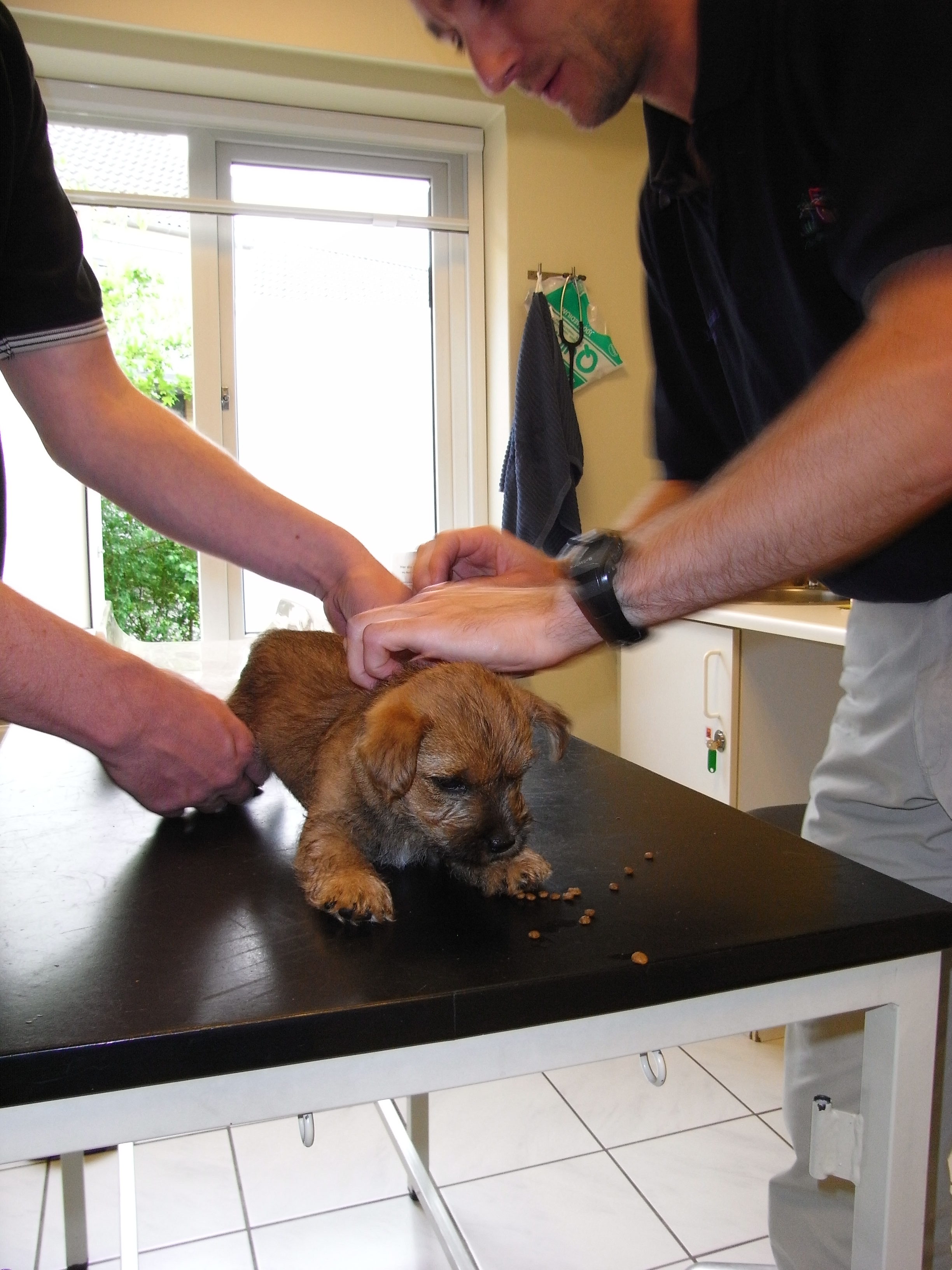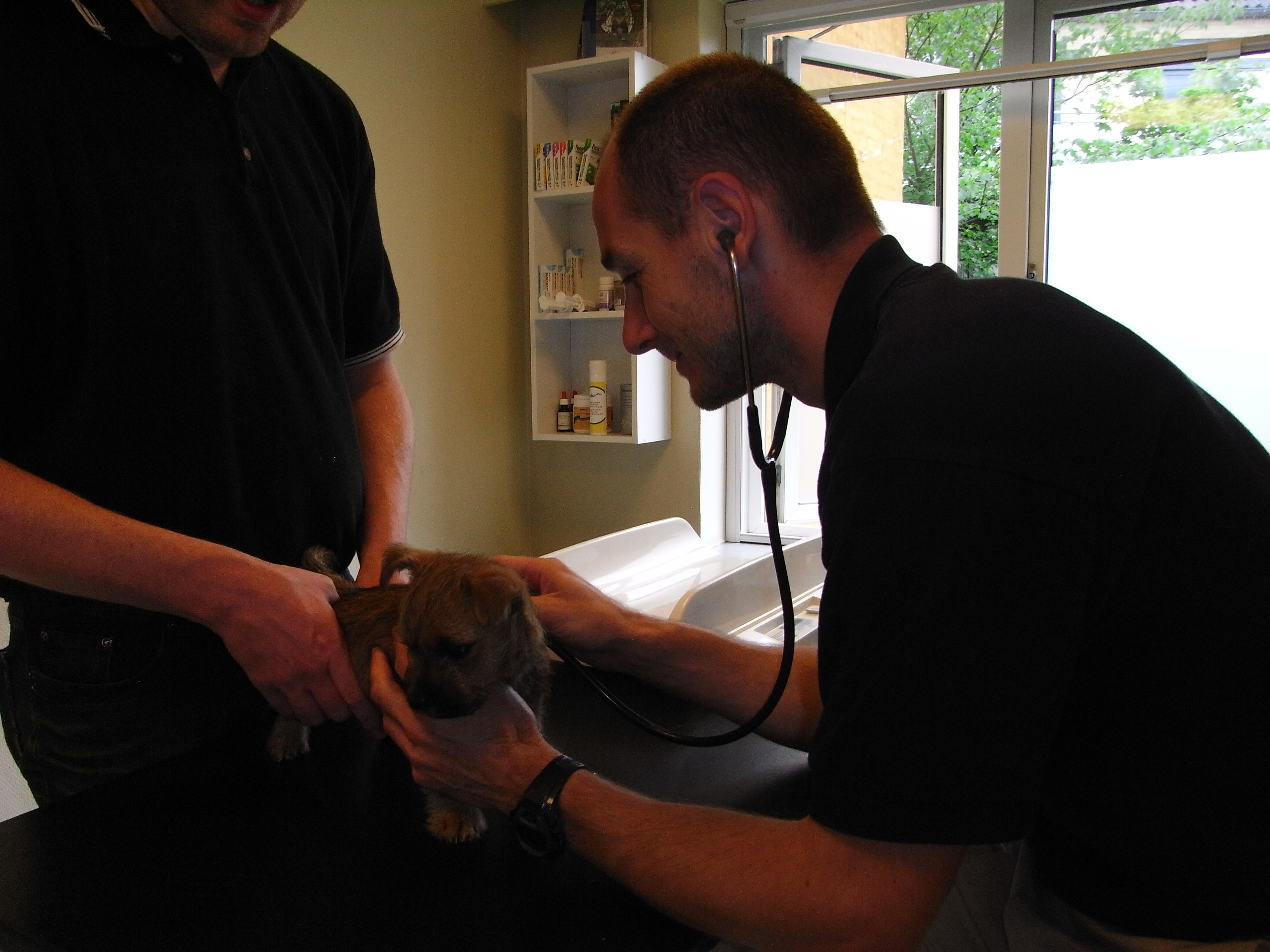 Vi har en del billeder fra 1-års fødselsdag for sidste hvalpekuld og den sidste uges tid, som vi sidder og sorterer i – nogle af dem kommer nok dumpende ind på bloggen hen over de næste dage. På kameraet var der bl.a. en del billeder fra turen op til vores superdygtige dyrlæge i fredags. Jens undersøgte alle hvalpene og gør alt hvad han kan for at dyrlægen bli’r et dejligt sted at komme.