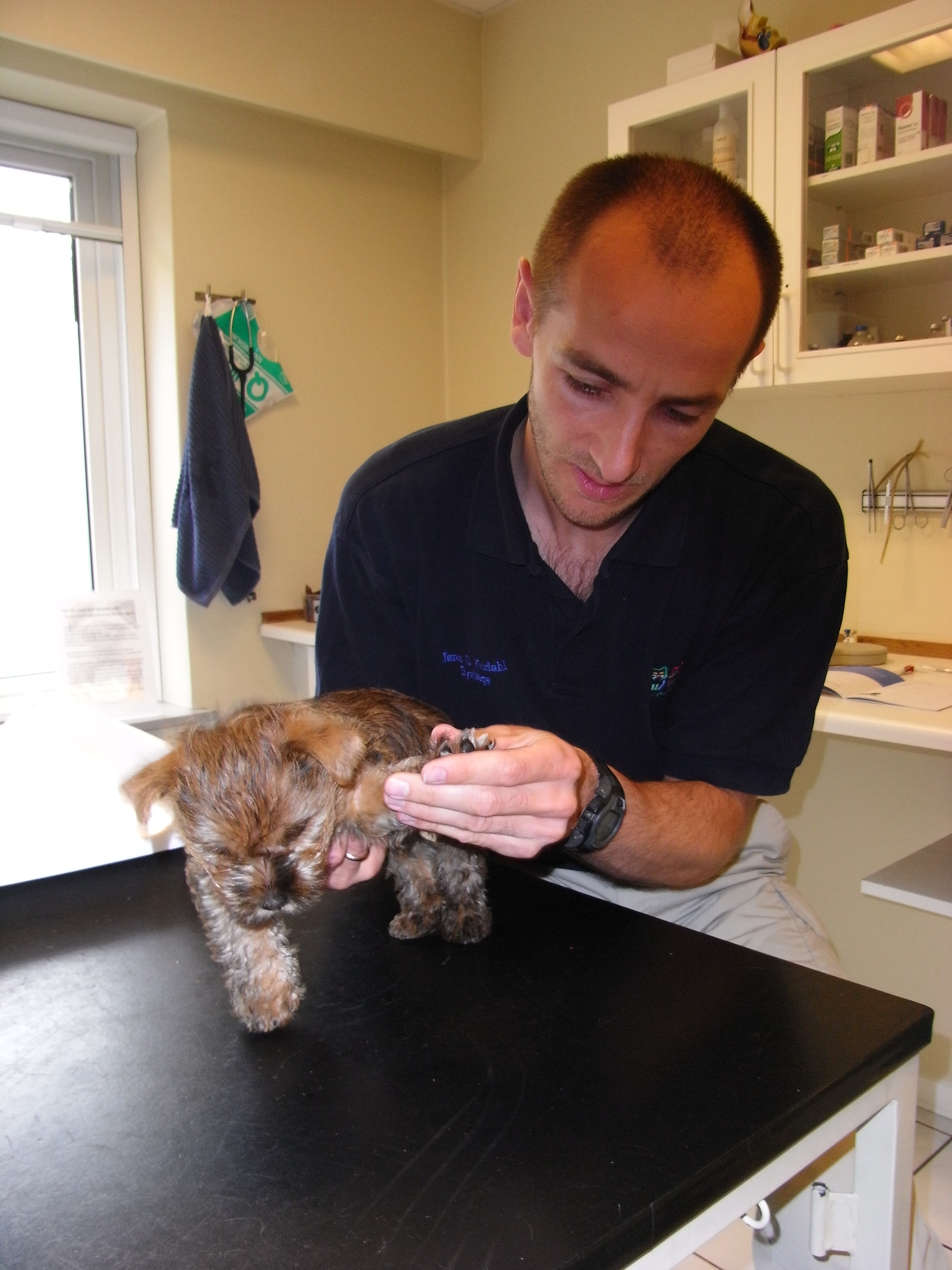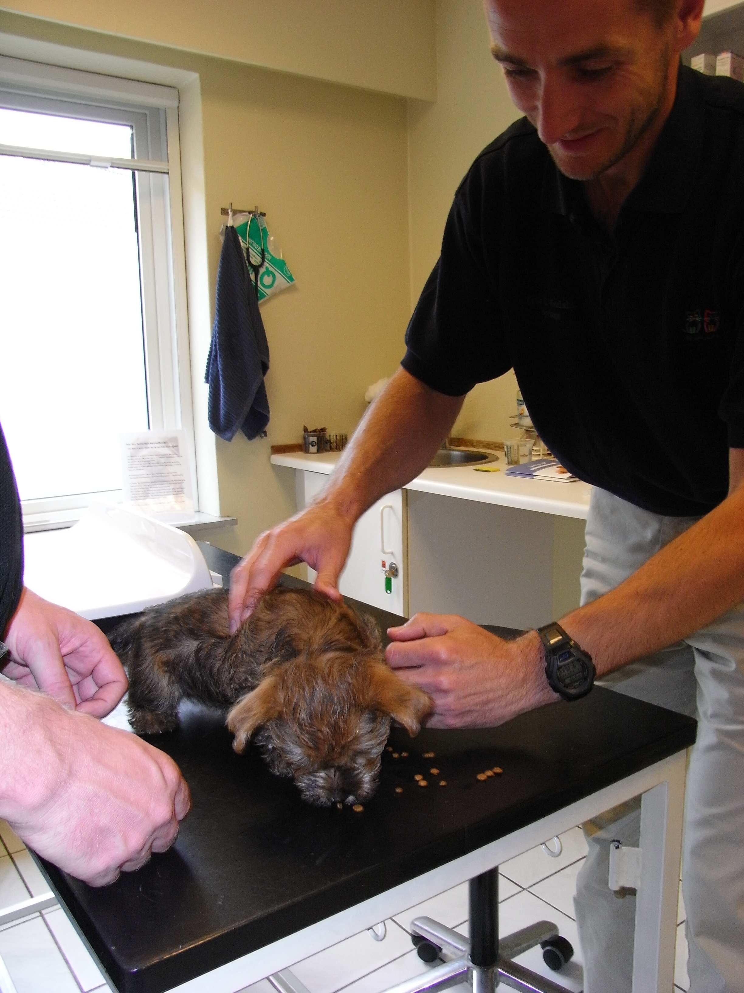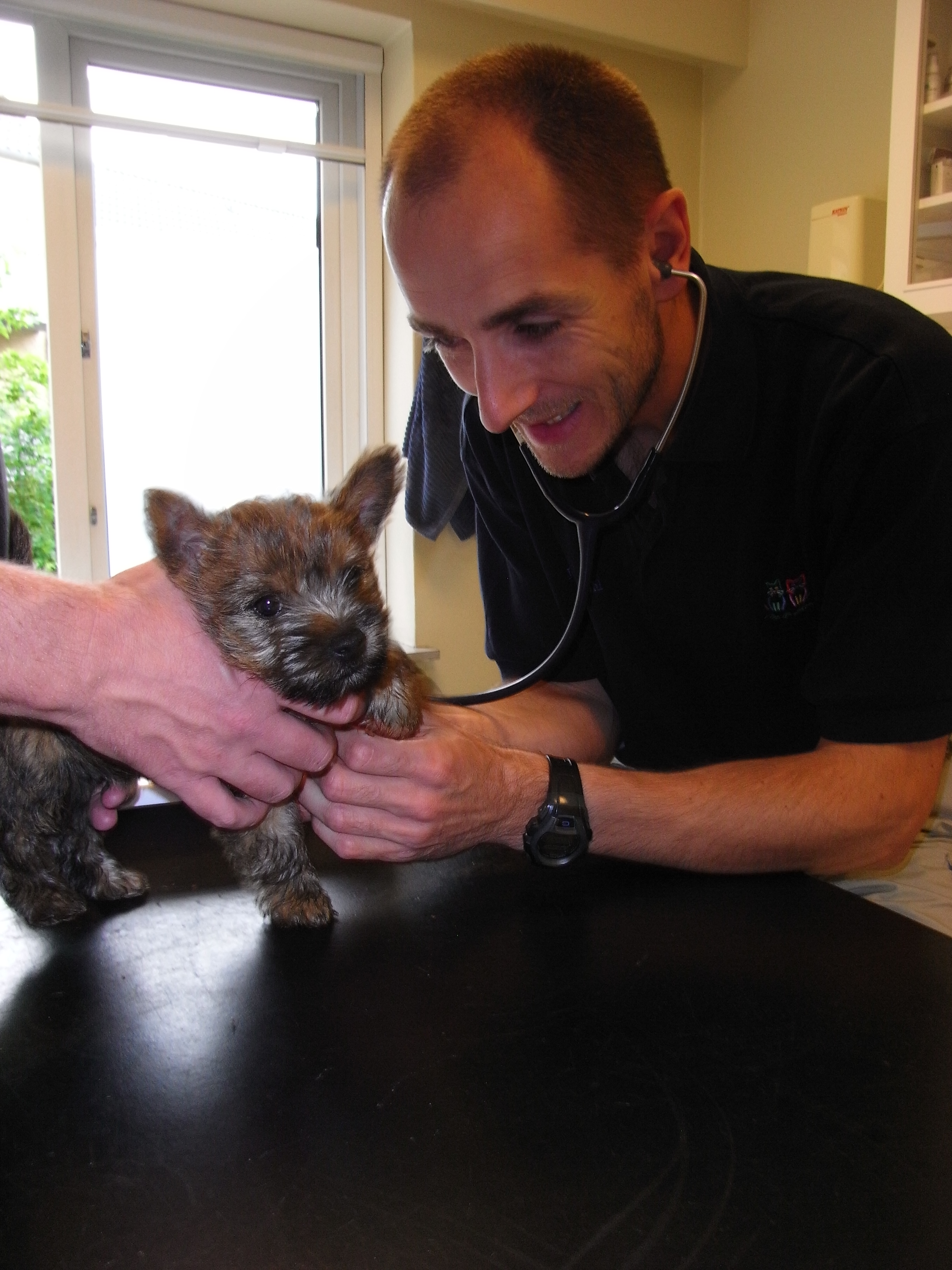 Vi har en del billeder fra 1-års fødselsdag for sidste hvalpekuld og den sidste uges tid, som vi sidder og sorterer i – nogle af dem kommer nok dumpende ind på bloggen hen over de næste dage. På kameraet var der bl.a. en del billeder fra turen op til vores superdygtige dyrlæge i fredags. Jens undersøgte alle hvalpene og gør alt hvad han kan for at dyrlægen bli’r et dejligt sted at komme.