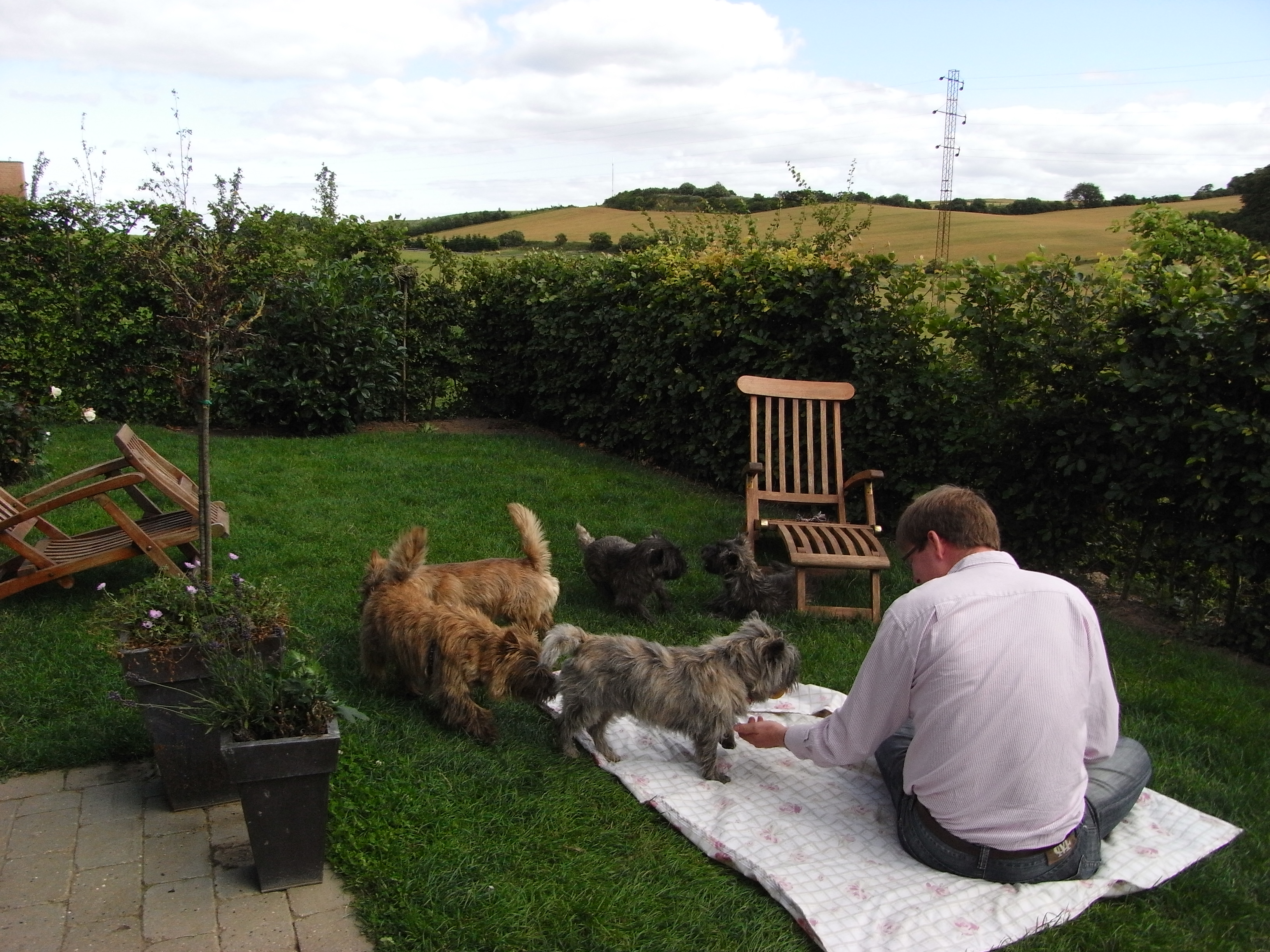 I søndags havde vi besøg af alle hvalpene fra sidste kuld, så det var en dag med 8 hunde i haven og fuld gang i den. Dittie og Ronia og så altså 6 søde røverbasser: Ludwig, Robbie, Bølle, Max, Messi og Rocky.