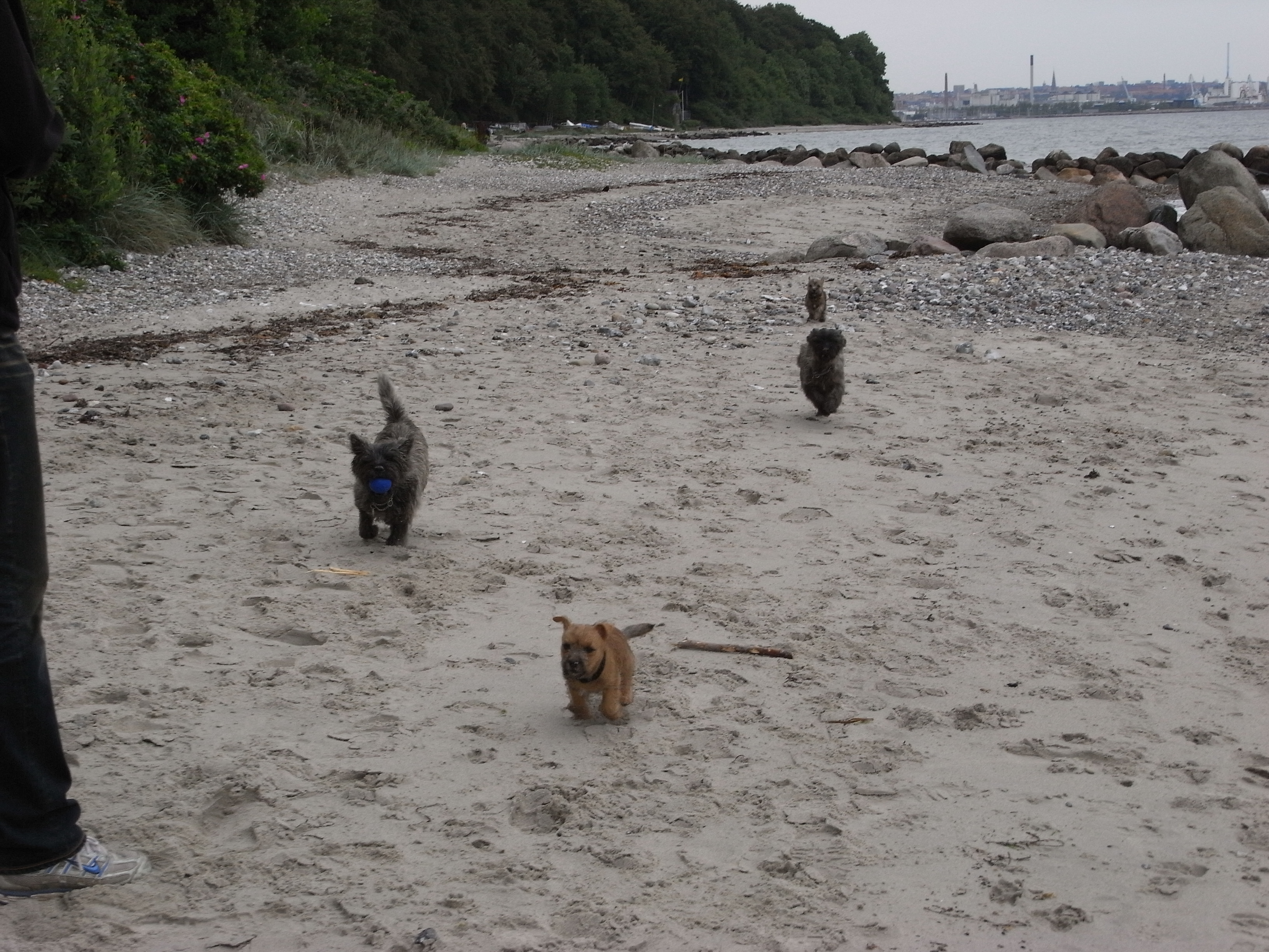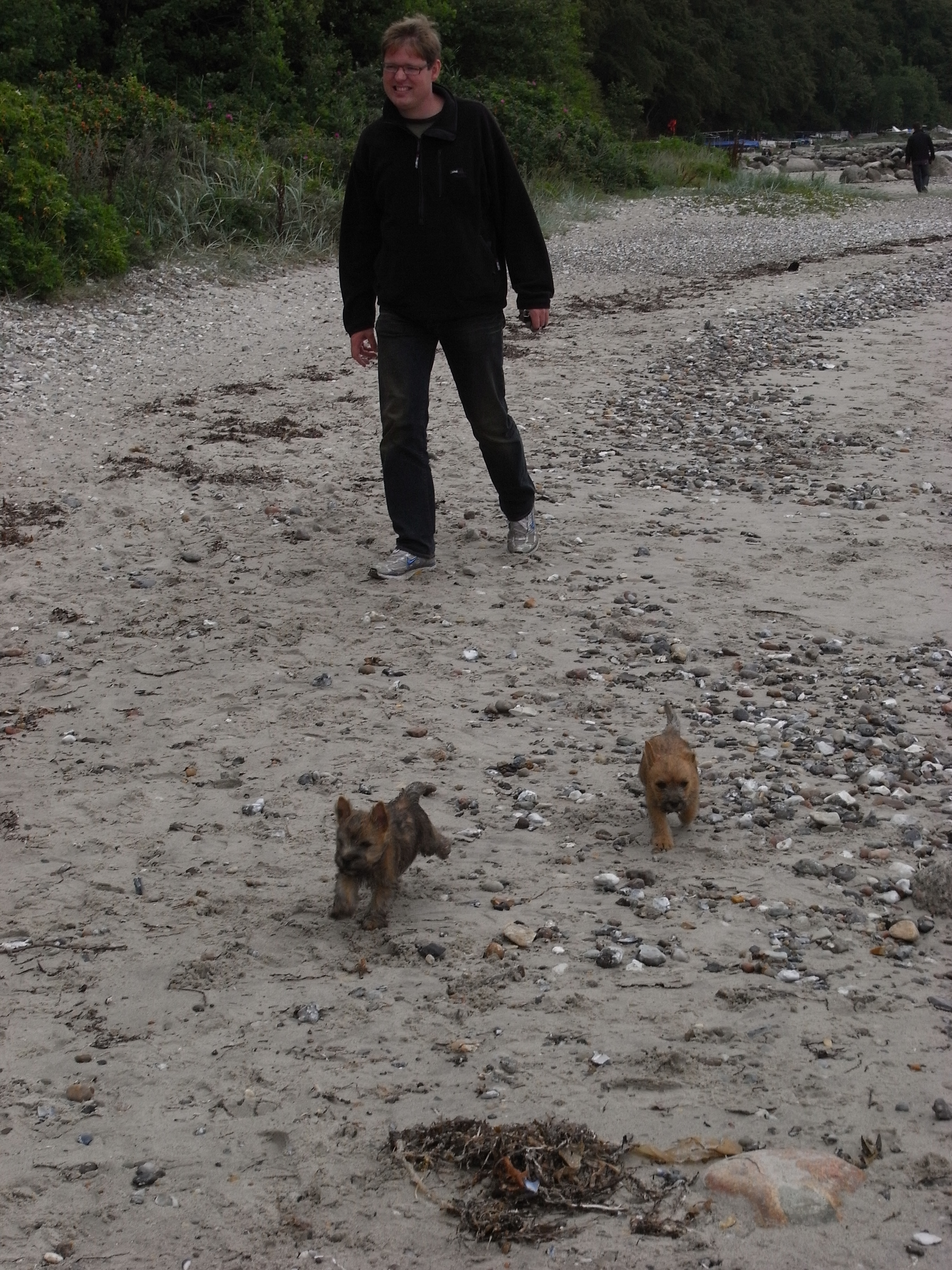Den sidste uges tid med Rocky er gået stille og roligt med alene-hjemme træning, en lille smule stå-alene foran Føtex-træning, en tur i bus med Århus Sporveje, ture til skov og strand med Dittie og Ronia, socialiserings ture ned på det lokale hundeområde og til sidst et besøg i Trige hos kattene Stumpe og Congo og knejterne Jens og Søren, og det hele har Rocky klaret i fin stil – så vi synes også at han blev klar til at flytte hjemmefra.