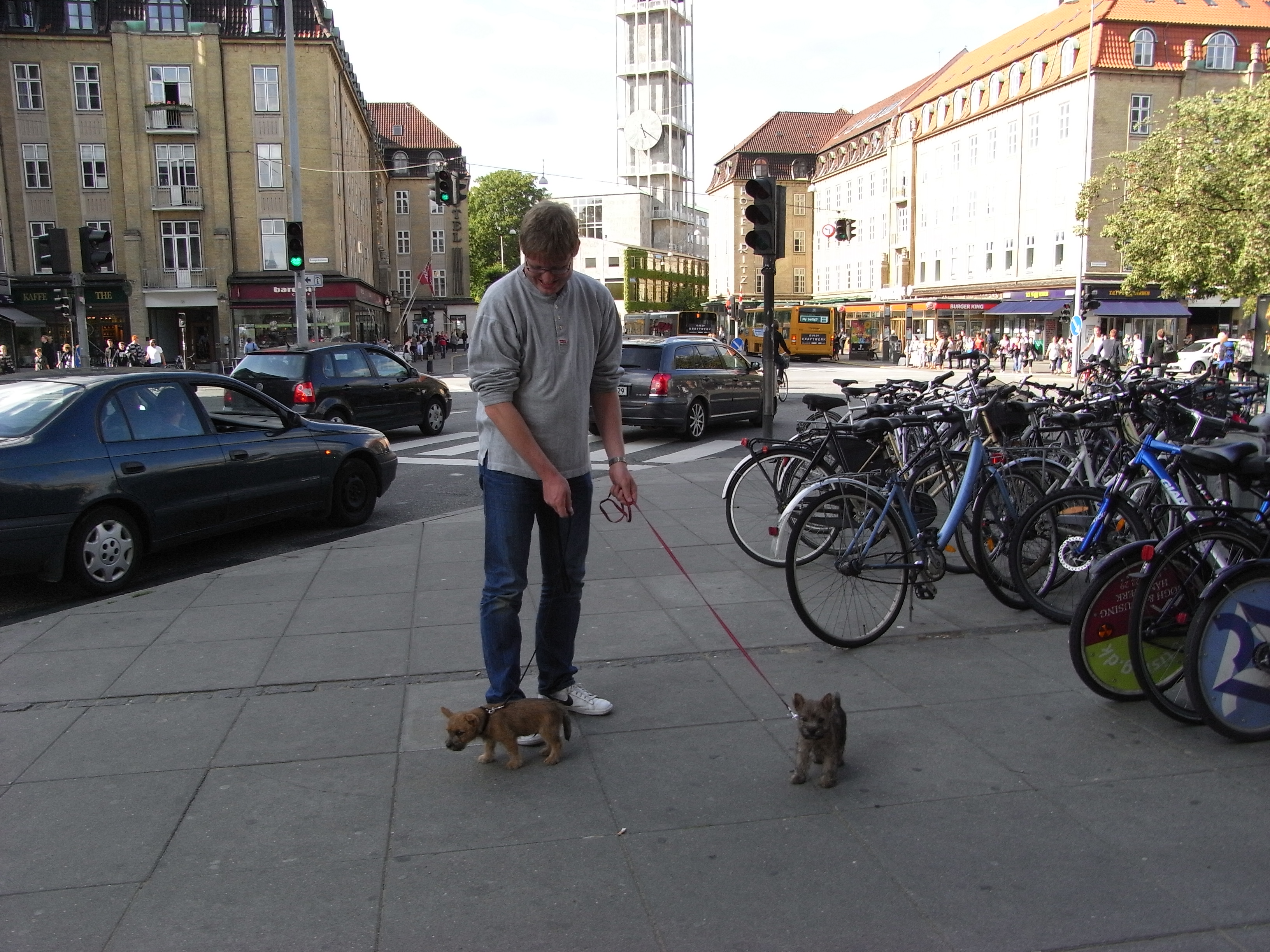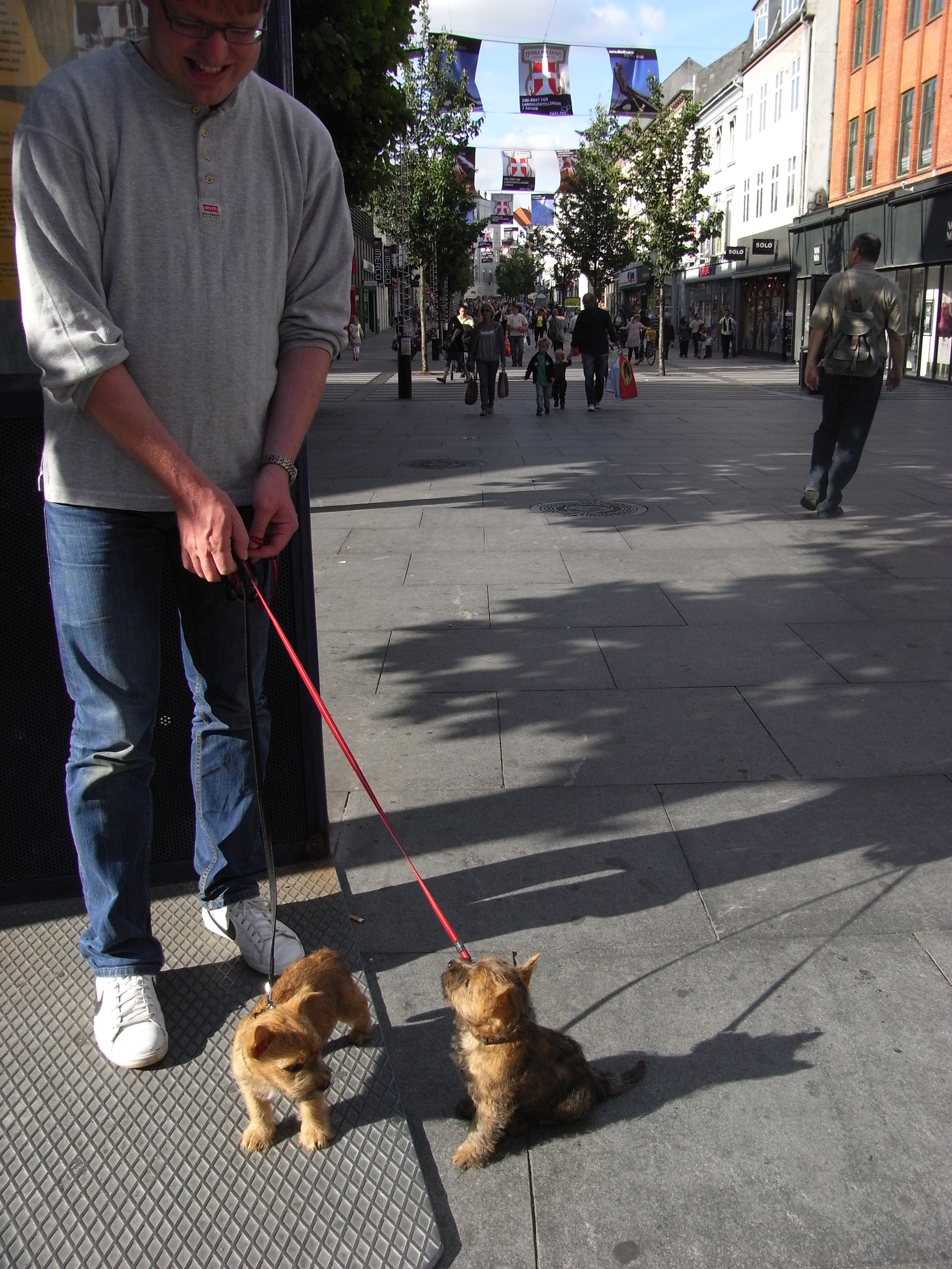 Ellers kører vi jo løs med socialiseringen af Messi og Rocky. Torsdag var vi på to køreture – den ene endte på markedet inde på Frederiksbjerg, hvor de fik oplevet lidt markedsstemning, og den anden køretur gik til Marselisborg Lystbådehavn, hvor vi gik en aftentur.