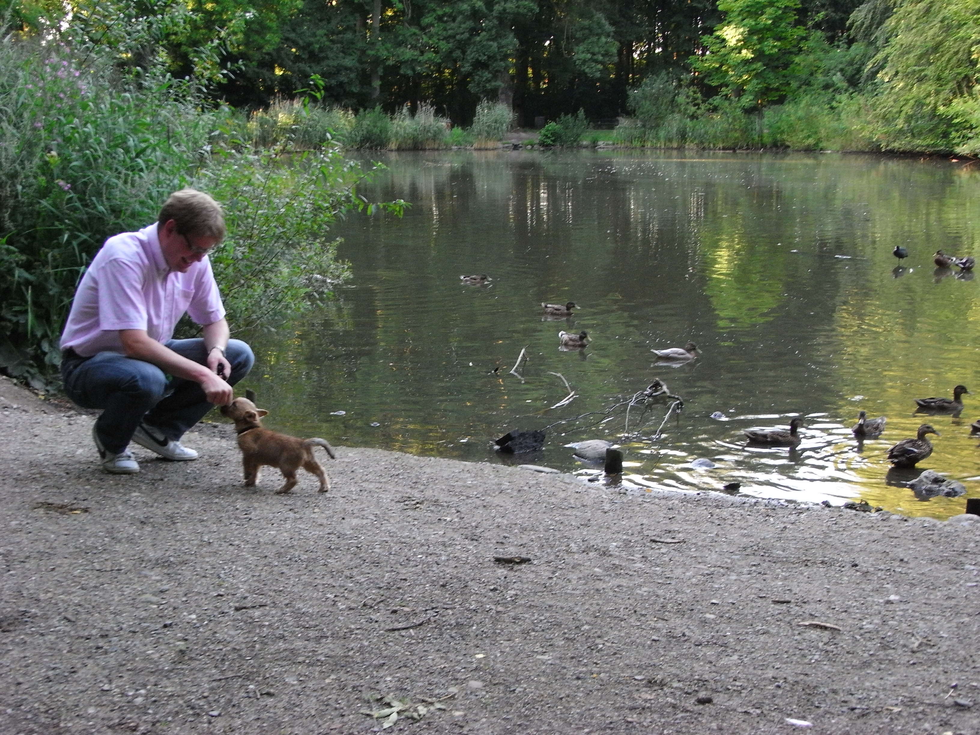 På turene har de små mødt et par andre hunde og masser af mennesker, der synes at de er søde og gerne vil snakke, og det er jo en af fornøjelserne ved at have en hvalp.