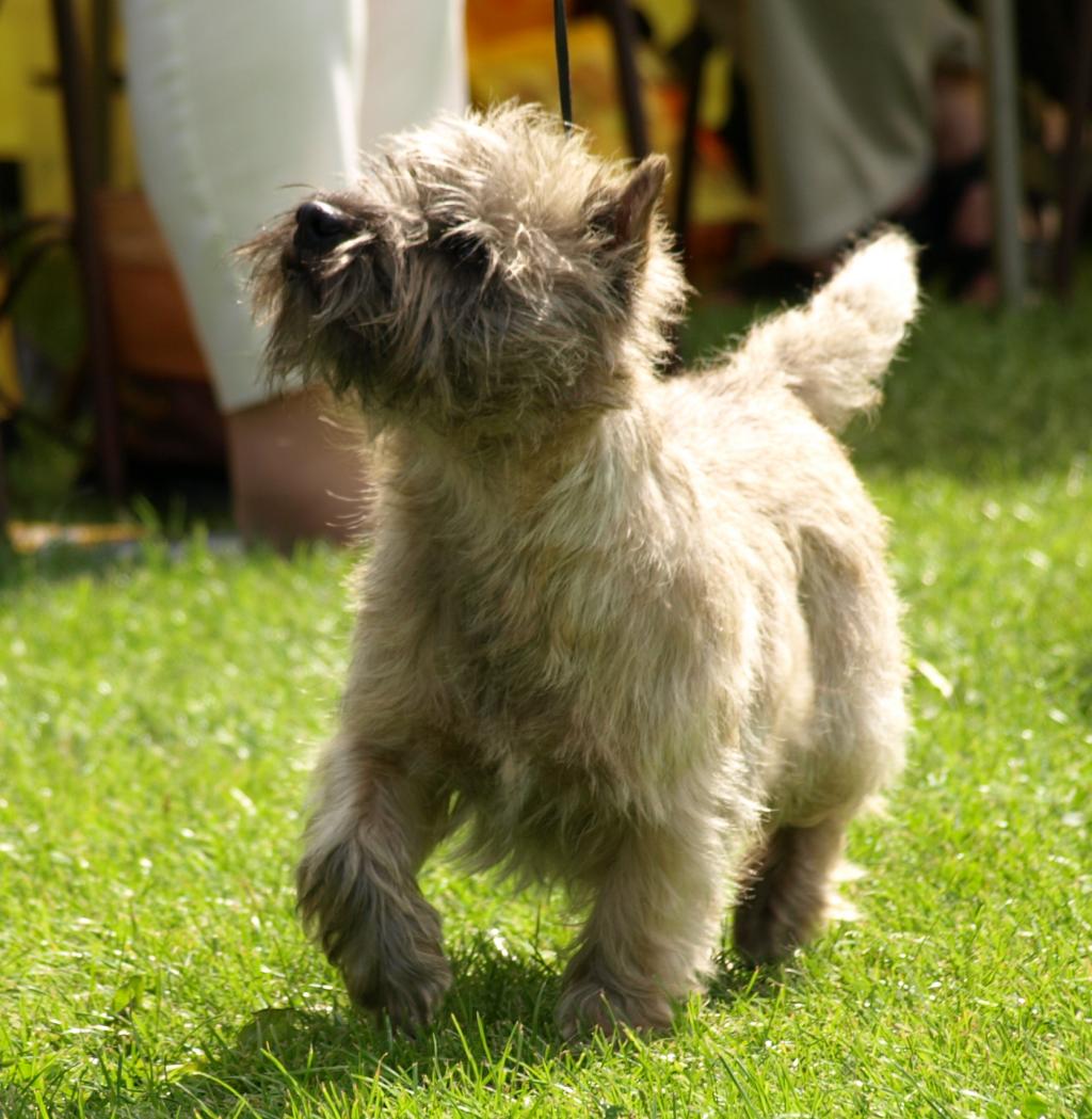En Fortrinlig 1. præmie og vi kunne tage tilbage til Wittrups motel og lade op til søndagens show i de skønne omgivelser og det gode selskab af Cairn-folk. En rigtig god opladning til søndagens fremvisning for engelske A. R. Mordue, som dog havde spidset pennen yderligere og raskt uddelte en 2. præmie og på samme tid noterede sig følgende, overvejende rosende, betragtninger om hende: