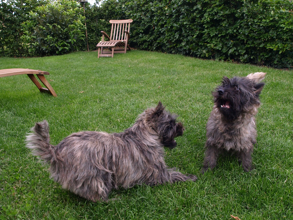 Bare lige en stribe billeder fra haven her til eftermiddag. Haven lægger græs til mange løbeture og er skueplads for drabelige opgør, hvor Messi og Rocky tumler, slås og leger. De er simpelthen så bedårende dejlige begge to.