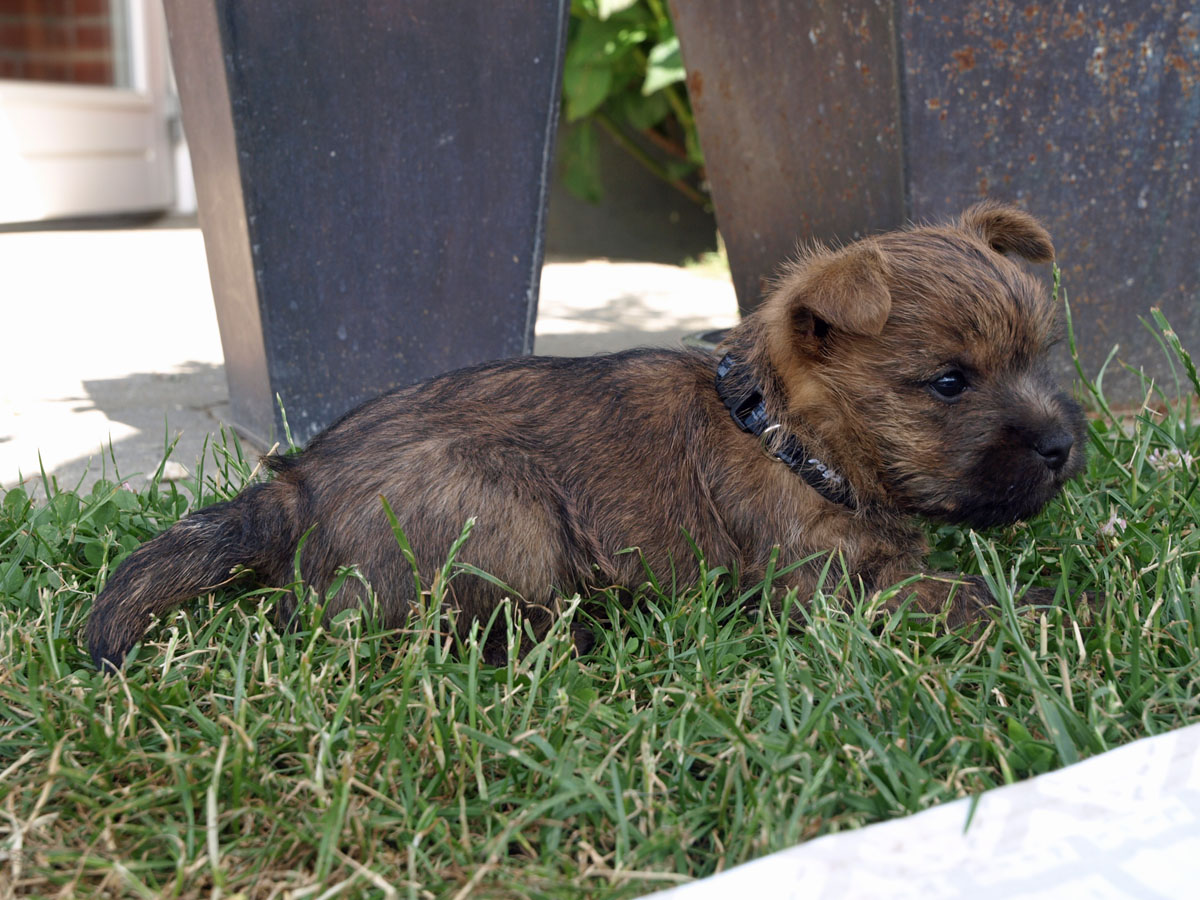 Herhjemme skal man lige holde lidt øje med Rocky hvis døren ud til haven er lukket i. Han er ikke helt sikker endnu, og man skal lige være opmærksom på om han lige er vågen, lige har tumlet eller går og lusker lidt rundt. Men sådan er det jo med hvalpe.