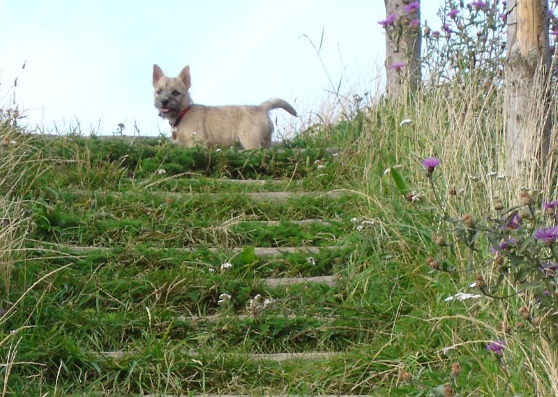 Ronia har også været med en tur op på Jelshøj i ugens løb – derfra billederne. Det lykkedes os at gemme os fra Ronia deroppe. Hun nåede vist ikke at blive rigtig angst, men det var en meget glad hund som stormede os i møde da vi kom frem igen. Bortset fra det, så holder hun sig altid meget tæt på os når hun er uden line.