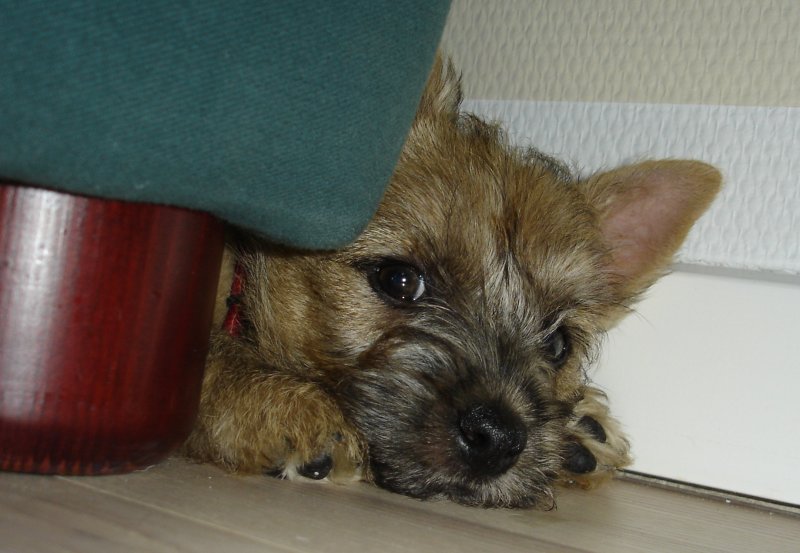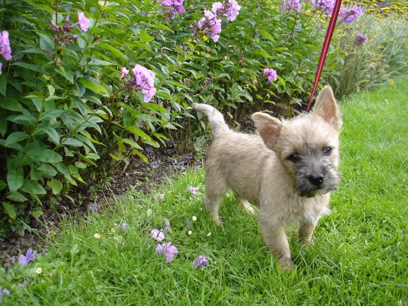 Lørdag formiddag var Ronia til hvalpemotivation for første gang. Bettina siger at det gik rigtigt fint, og at Ronia fik i hvert fald een ny legekammerat i en jævnaldrende Cairn-pige. Vi tobenede fik lektier for – vi skal lære hende at gi’ os opmærksomhed når vi kalder ved at gemme en godbid i hånden og belønne hende med ros og godbid når hun vender hovedet for at se hvad vi vil hende.