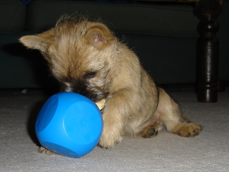 Ellers udviser Ronia fin, kæk, modig Cairn-adfærd i det daglige – også overfor julepynt, lyskæder og den slags. Først årvågen og så nysgerrig. Gumle-ringe og gnave-stænger bli’r også udsat for Cairn-adfærd: de bliver prompte gravet ned hvis hun ser sit snit til det. Bettinas Azalier får jævnligt luftet rødderne, for hvorfor stå og grave i klæg lerjord hvis der er et blødt surbundsbed i haven?